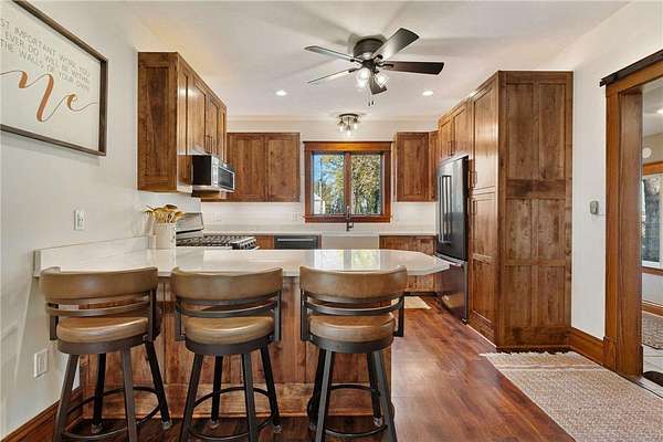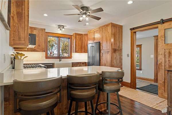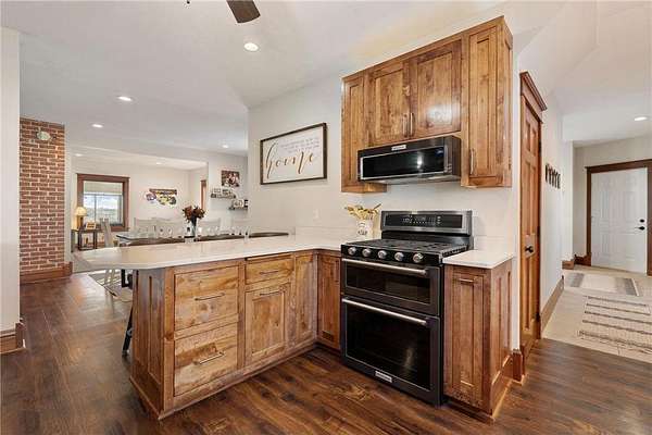 This property offers a welcoming main level including a gorgeous kitchen with beautiful custom Amish built cabinets, stone countertops, black stainless KitchenAid appliances and tile backsplash. Options offer an eat in kitchen along with an open floor plan that flows into the dining and main living areas. Two porches, a full bath + laundry complete the main level. Upstairs you'll find 4 bedrooms and a spacious updated bath with a large tiled shower and heated floors. The foyer, half bath and the 1100 sq ft garage also have heated floors for year-round comfort. Other recent updates include AC/Furnace, plumbing, electrical service, siding, windows, doors, and roof.