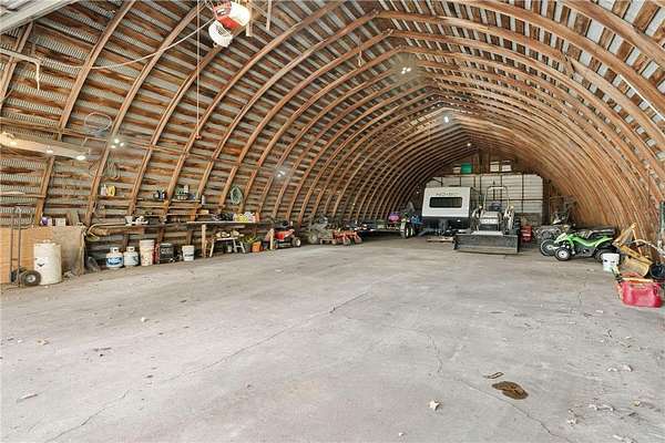 Surrounded by beautiful, mature trees including White Pines and Oaks, the landscape features soft rolling terrain with pasture space. The property includes multiple outbuildings for versatile use: large Quonset building (90x38), steel Northland building (45x30), barn (75x30) and a machine shed (40x24). These outbuildings, combined with ample land, offer endless potential for hobbies, farming, or storage.