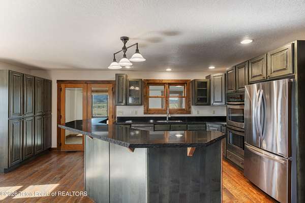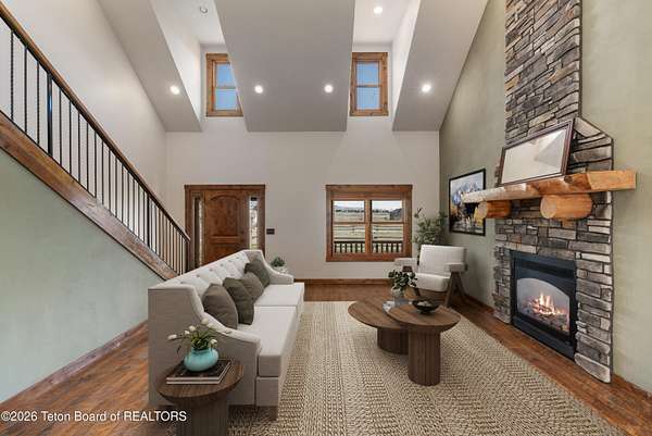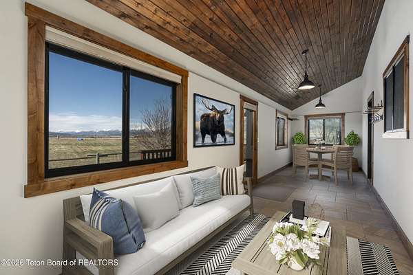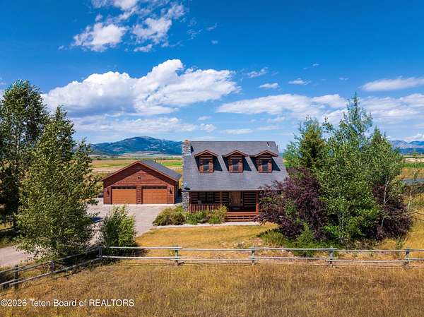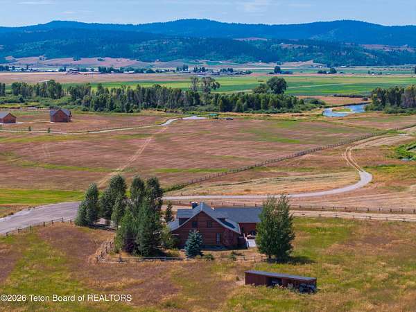 Freedom! That's the address and what you will find at this end-of-the-road, horse-friendly, fishing-adjacent home on 6+ acres with panoramic views of purple mountains majesty (Black Mountain, actually, as well as the Salt and Caribou ranges) and plenty of room for your pursuit of happiness. The main home was recently expanded with the enclosure of a sunroom/office/flex space with in-floor heating that looks north across flat acreage that is ready for your critters, crops and additional development. With five bedrooms there is room for everyone. The oversized detached garage can accommodate large vehicles as well as all your outdoor recreational gear. Wildflowers surround the charming western-style home with two decks, patio and raised flower beds enhancing the outdoor/indoor interface. A loafing shed with stalls for at least two horses and enclosed storage offers additional exterior storage. River Ranches residents enjoy access to a private boat launch on the Salt River. Centrally located with quick access to Star Valley's abundant public lands for hunting, fishing, snowmobiling and boating on Palisades Reservoir. Jackson Hole and the gateway to Grand Teton and Yellowstone national parks is less than an hour to the north.