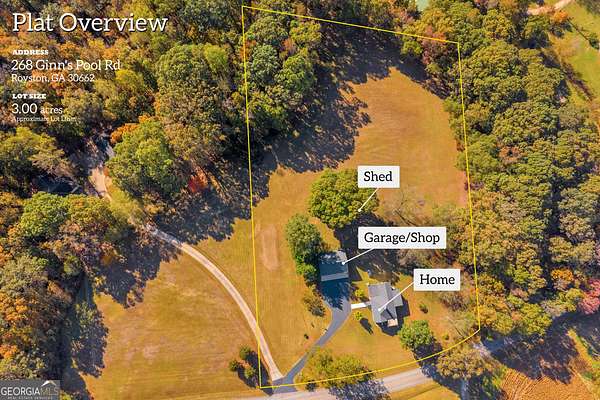 3 Acres with Farm Views and Timeless Charm Welcome to this picture-perfect farmhouse in the heart of Royston, Georgia. Hart County. Originally built in 1906 now updated and lovingly maintained, this 3-bedroom, 1-bath home captures the warmth and comfort of classic country living while offering modern conveniences and beautiful surroundings. Set on three gently rolling acres, the property overlooks two peaceful ponds and neighboring farmland, creating a postcard view from every window. The home features a cozy family room with original wood-slat walls & brick fireplace, a bright sunroom perfect for morning coffee, and inviting spaces that immediately make you feel at home. An oversized detached two-car garage with power, water, and a spacious loft provides excellent potential for a workshop, guest suite, or storage. The grounds include mature trees that provide shade and privacy, plus a charming old barn that adds even more character to the setting. Located just minutes from downtown Royston and a short drive to Victoria Bryant State Park and Lake Hartwell, this property offers the best of small-town Georgia living-peace, space, and connection to nature-while still convenient to shopping, schools, and I-85. Whether you're searching for a forever home, weekend retreat, or a slice of countryside to call your own, 268 Ginns Pool Road delivers charm, serenity, and history in one perfect package.