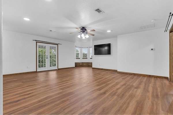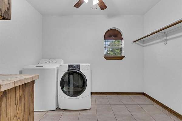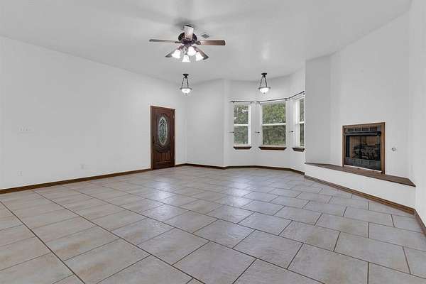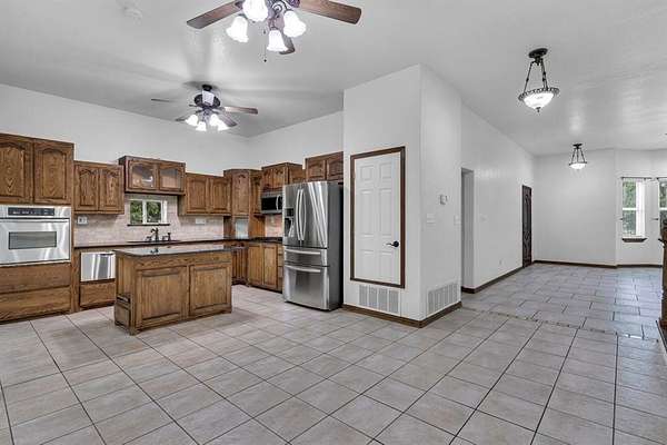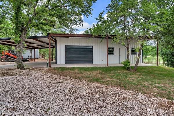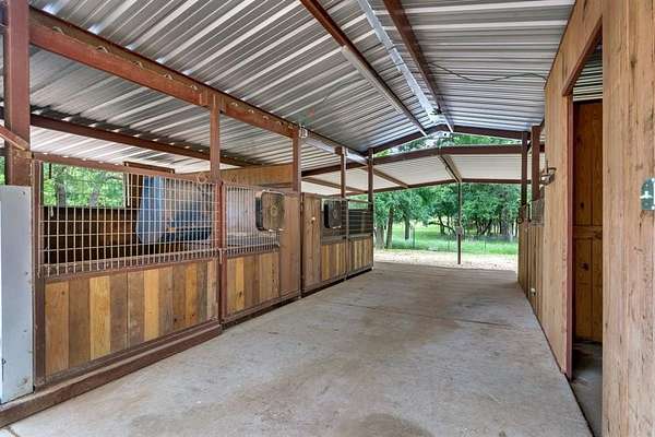 The property also includes a shop with a built-in tornado shelter and horse stables with electricity and water already in place.