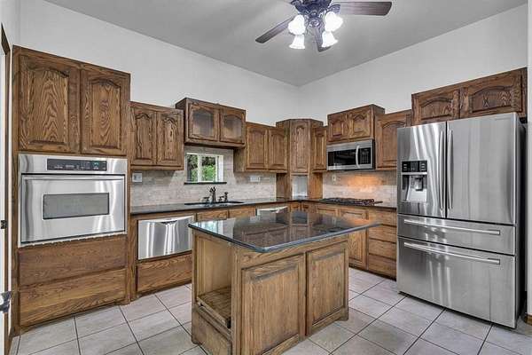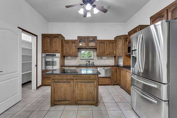 The kitchen is designed to impress with a large island, granite countertops, gas cooktop, and plenty of storage—perfect for hosting or everyday living. The primary suite is oversized with dual sinks, separate shower, and a large walk-in closet.