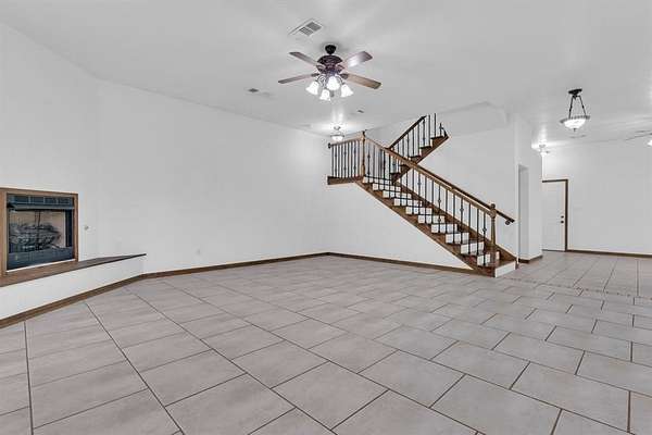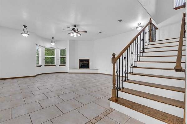 Inside, you’ll find high ceilings, tons of natural light, and an open layout with a spacious living area and fireplace that makes the space feel warm and inviting.