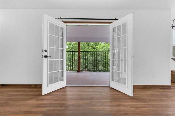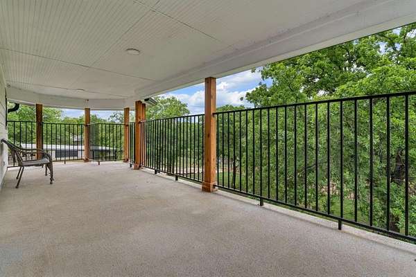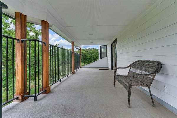Step outside to covered porches, a balcony, mature trees, and your own pond on the property—the kind of setting that’s hard to find.
