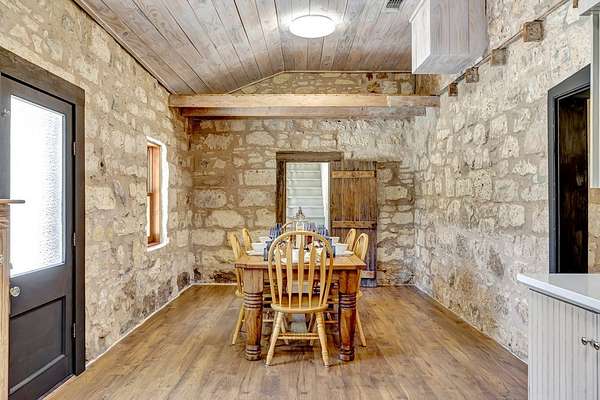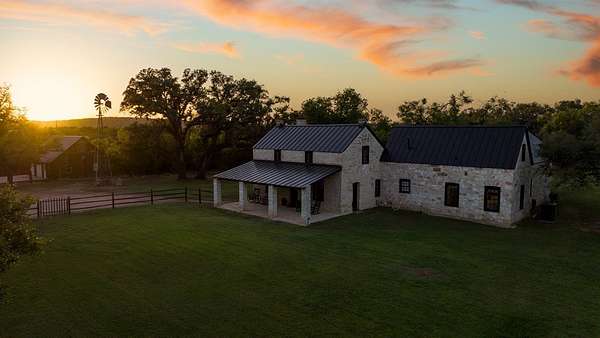 Est $9,164/moMust see historic, limestone, pioneer farmhouse on 11.49 unrestricted acres with magnificent live oaks - the perfect combination of preservation and modernization. True 4/4, extensive parking and a 2 car garage with air conditioned flex space. Recent remodel and landscaping in 2022 brings out the best in this very livable, turnkey home less than ten minutes from downtown Fredericksburg. Beautiful old stone barn offers a potential 2/2 guest house or amazing pool cabana. Currently a shot-term rental with room and plans to expand. The serene setting would also make a lovely private residence. Marschall Creek Retreat is ready for your Hill Country dreams!