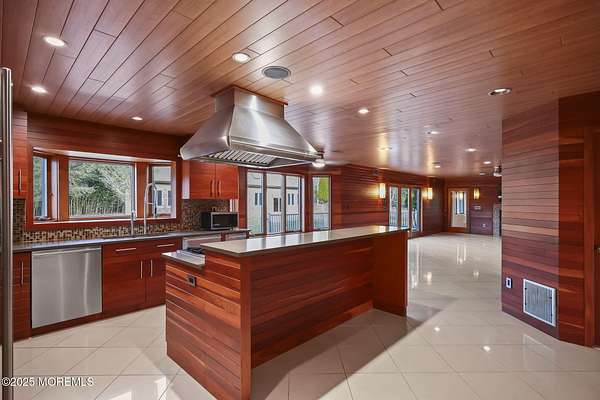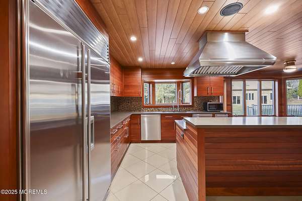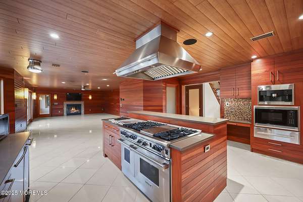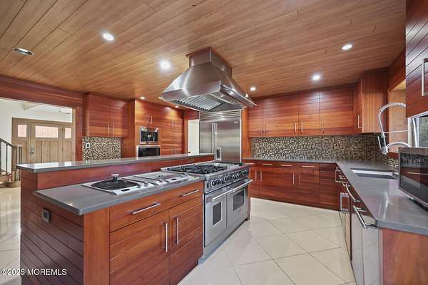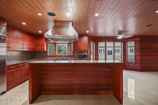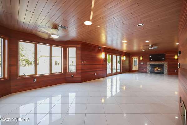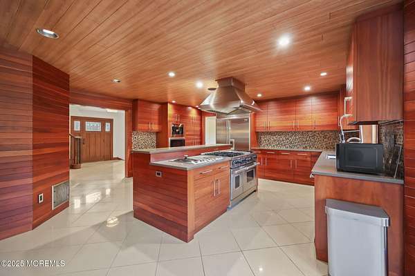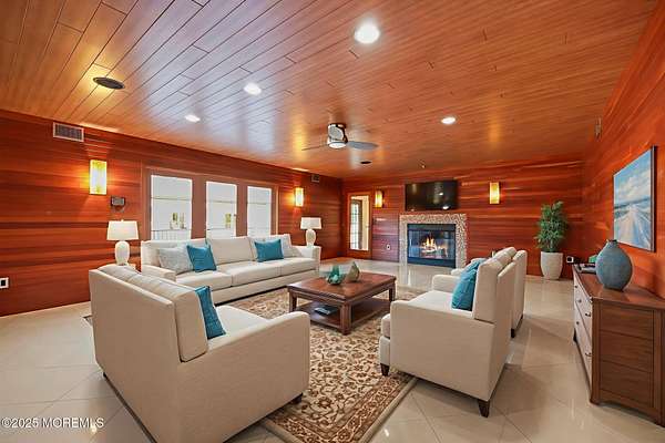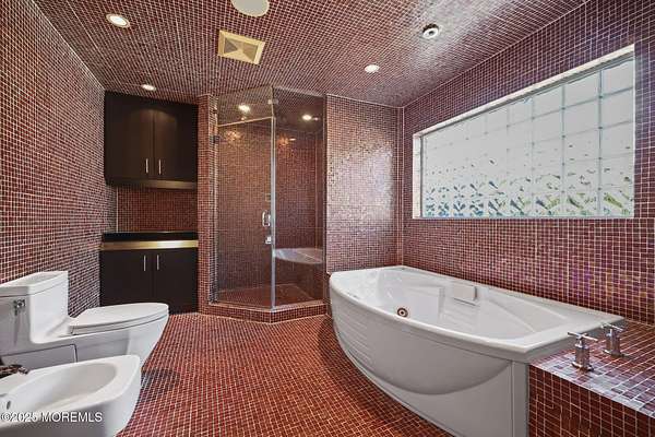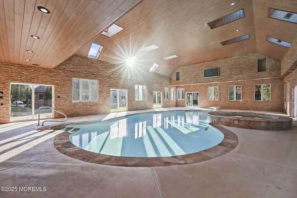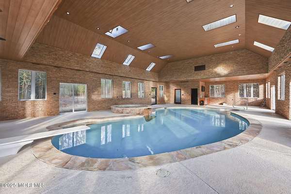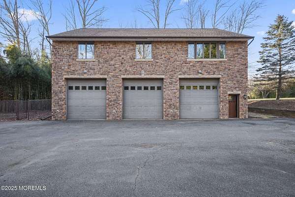 A rare opportunity to own an approximately 3-acre private estate retreat accessed by a secluded 200-foot private drive. The main residence showcases an enhanced stone facade and a three-car garage, setting the tone for exceptional craftsmanship throughout. The interior features exquisite wide-plank hardwood flooring and a custom cherry-wood gourmet kitchen equipped with state-of-the-art appliances including a Sub-Zero refrigerator and freezer, built-in Miele coffee system, dual dishwashers, integrated countertop air fryer and steamer, warming drawer, and premium finishes throughout. The kitchen opens to a spectacular 24x18 family room with oversized porcelain flooring, a wood-burning fireplace, and stunning custom cherry-wood detailing on both walls and ceiling. The home also offers formal living and dining rooms, five and one-half designer bathrooms, and a layout that truly must be seen to be appreciated. The residence spans three levels plus a finished basement complete with a full bath, sauna room, and whirlpool. A separate stone-clad structure with soaring vaulted ceilings features a spectacular indoor gunite pool with spa, full bath, and year-round enjoyment. An additional third building on the property accommodates three cars and includes a partially finished loft space suitable for living quarters, along with a full bathroom. Simply too much to list, this truly one-of-a-kind property would cost millions of dollars to duplicate today. Private showings by appointment only.