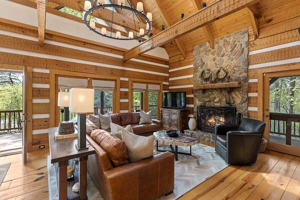 Lake Glenville Luxury Retreat: Private Dock, Designer Renovation, and Turnkey Perfection! Mountain-lake living doesn't get more dialed-in than this. Nestled in the woods of Fenley Forest on the east side of Lake Glenville, this renovated lakefront log home offers the rare combination of rustic details and high-end features, complete with a private dock and move-in-ready furnishings curated from Restoration Hardware and more. Inside, the home's open floor plan is a breath of fresh air with vaulted A-frame ceilings, sky-high windows, and warm wood textures throughout. The main level features a spacious primary suite with double vanity bathroom and direct access to one of two expansive, wraparound porches. The gourmet kitchen shines with updated black leathered countertops, custom sink, and stylish upgrades - just one example of the thoughtful renovation that touches every room. Upstairs, two inviting guest bedrooms await, one featuring a cozy lofted reading nook accessible by ladder. The lower level is designed for both fun and comfort, offering a 4th guest bedroom, bonus room/office, two full bathrooms, a wet bar, and a fully loaded game room with shuffleboard, arcade games, and bumper pool. Guests can enjoy their own wraparound porch for added privacy and flexibility. Recent upgrades make this home a worry-free escape: New whole-home A/C and propane furnace; Third-floor mini-split system under warranty and primary bedroom mini-split for private climate control; Three massive 1,000-gallon below-ground propane tanks + whole-house generator for uninterrupted power; New private well plus access to a fully upgraded community well - an exclusive dual-water source setup; Expanded septic system for 4 bedrooms. To make lake life even easier, a nearly new lithium-powered EZ Go golf cart (1-2 seasons old) is included. It's quick with lots of torque for cruising effortlessly to your private dock in style. Located just 15 minutes from the shops and restaurants of Cashiers, this fully furnished home with only minor exclusions offers a rare opportunity to own a true luxury retreat on Lake Glenville. No renovations, no stress, just fresh mountain air and lake days from day one!