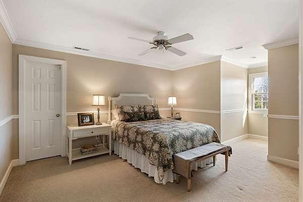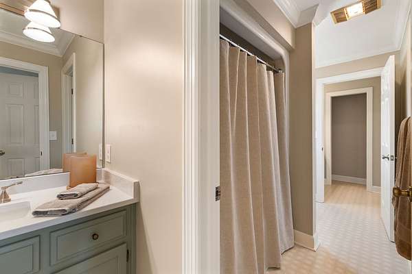 The spacious primary suite is conveniently located on the main level and features double vanities, a walk-in shower, and a relaxing garden tub. A cozy family room with a classic brick fireplace creates the perfect gathering space. Upstairs, you'll find two generously sized bedrooms with large walk-in closets connected by a Jack-and-Jill bath.