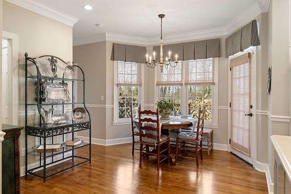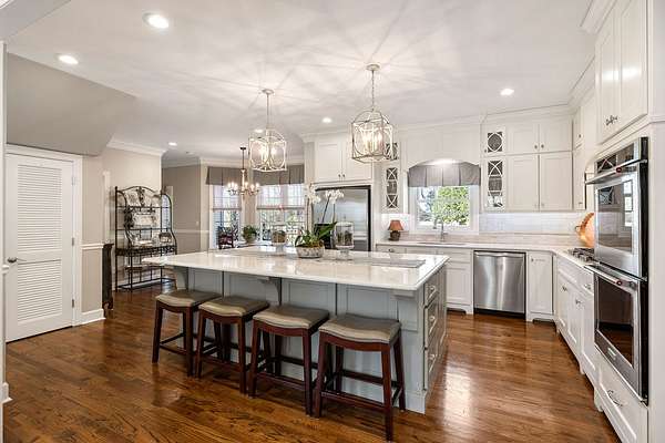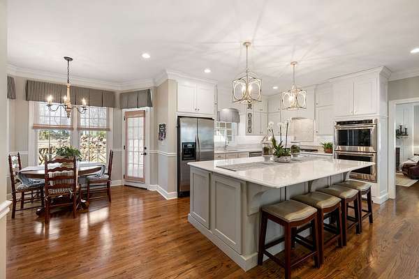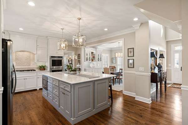 Step inside to find gorgeous hardwood floors and a versatile formal living room that would also make an ideal home office. The dining area features custom built-ins, adding both character and functionality. The gourmet kitchen is truly a chef's dream--complete with a large center island, abundant cabinetry, and distinctive custom touches--perfect for entertaining family and friends.
