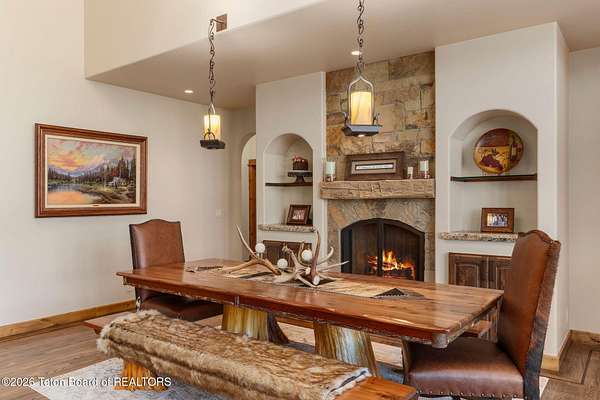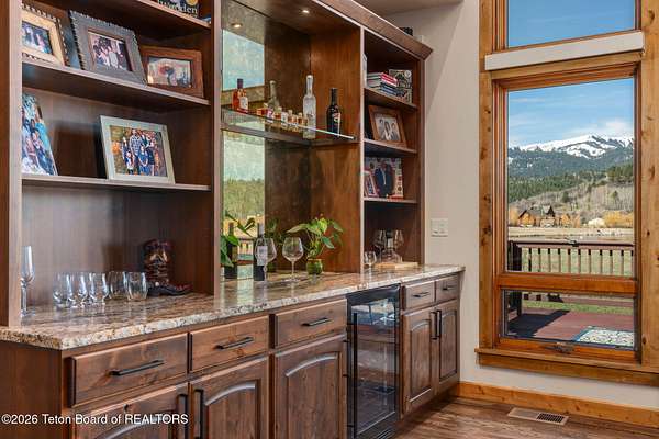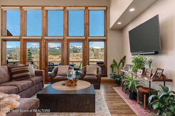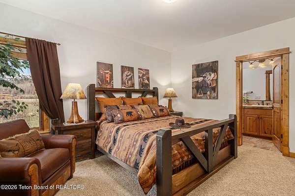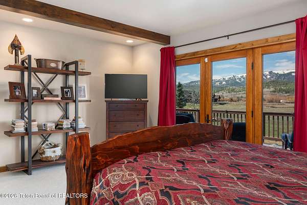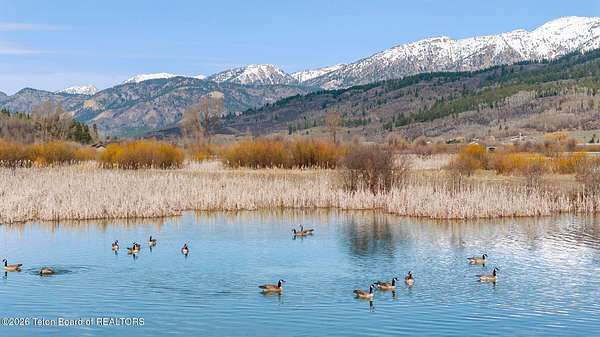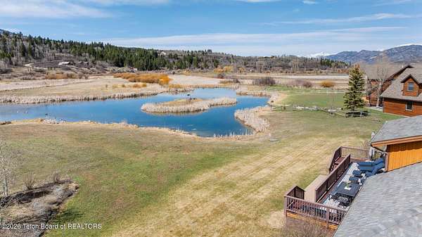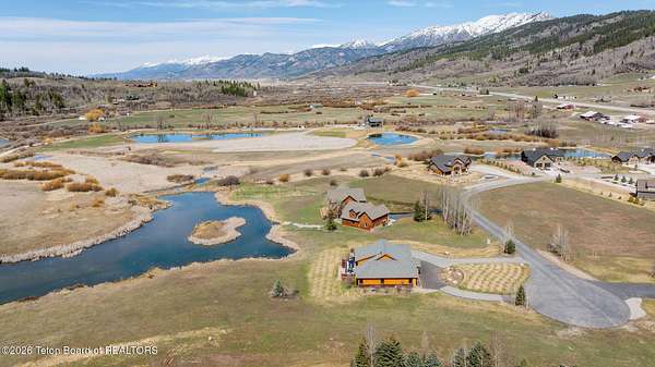 Experience panoramic mountain views from nearly every window in this thoughtfully designed home, created for comfort, relaxation, and seamless connection to its pristine, park-like surroundings. Situated at the end of the road, this private retreat offers exceptional tranquility and is frequented by abundant wildlife, waterfowl, and trout in the nearly one-acre, professionally enhanced pond--ideal for kayaking or casting a dry fly. This spacious residence features 4 bedrooms, 3 bathrooms, a private office, and a dedicated wine tasting room, offering the perfect balance of everyday living and entertaining. The expansive great room serves as the heart of the home, perfectly suited for gathering, and is flanked by two west-facing suites, two additional bedrooms, and inviting flex spaces. Extensively remodeled over the past two years, the home has been meticulously maintained and thoughtfully updated, highlighted by a brand-new, fully remodeled kitchen, along with fresh interior paint, new front porch, stone, accent beams, new carpet and much more. From the main living areas, take in sweeping views across the pond, 36 acres of protected open space, the Salt River, and on to Black Mountain. These same breathtaking vistas continue into the primary suite, which opens directly onto the massive back deck--an ideal place to unwind and soak in the landscape. As the day unfolds, enjoy the shifting light from multiple outdoor spaces--retreat to the front deck in the evening as the sun casts its glow across the Salt River Range. Located on arguably the best lot in Salt River Cove--where horses are welcome--this property is also a gateway to adventure, with vast public lands, rivers, and recreation just minutes away. Jackson Hole and world-class skiing are only a scenic 45-minute drive up the Snake River Canyon, with Grand Teton and Yellowstone National Parks within easy reach.