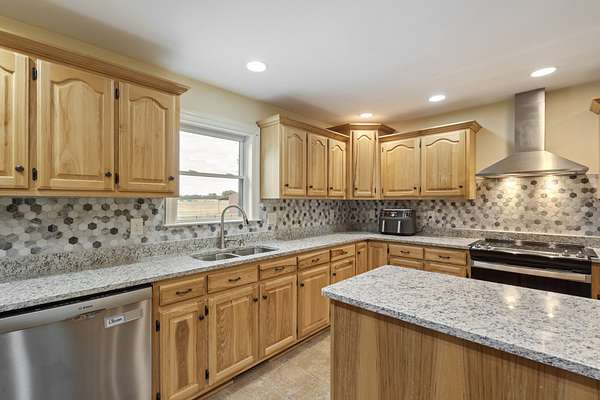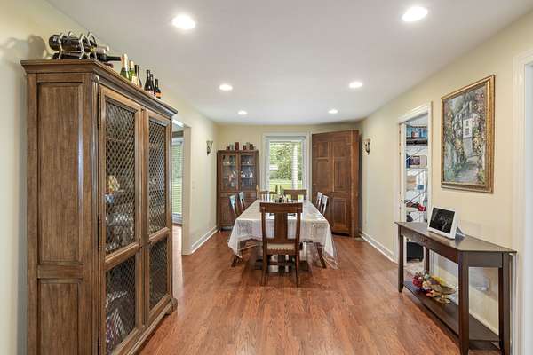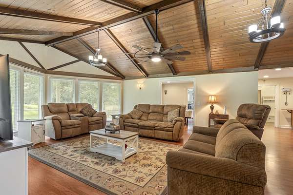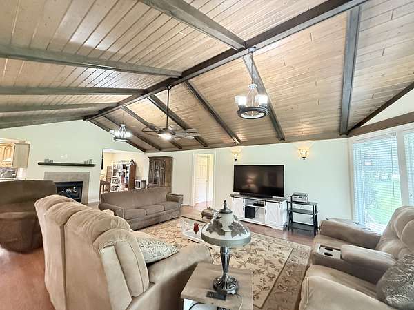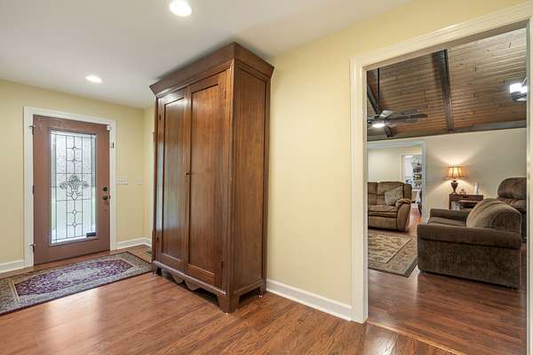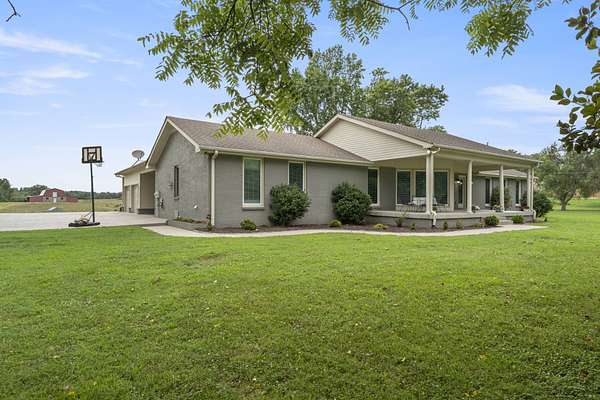 NEW PRICE! Nestled on approximately 6.13 picturesque acres in one of Wilson County's most desirable areas, this stunning 3,400 sq ft brick, one-level ranch w/a large covered front porch offers the perfect blend of privacy, space, & convenience. Enter a spacious foyer from the inviting front porch or use the back entry into the mud room/drop zone for everyday ease. Set far off the road, a paved driveway lined w/mature trees leads to a detached 2-car garage, connected by a breezeway-style carport that adds even more covered parking, storage, & an open patio--ideal for relaxing or entertaining. Inside, this 4-bed 2.5-bath home welcomes you with a wood-plank vaulted ceiling with wood beams in the living room, a see-through gas fireplace, and a separate flex space. Bedrooms 2 & 3 each feature double closets and private 60 sq ft study areas, along with a Jack & Jill bath offering a tub/shower combo and custom vanity. Additional highlights include a generous laundry room with a sink, a walk-in pantry, and a dedicated office. The expansive primary suite includes a large walk-in closet and a separate workout room, offering plenty of space to unwind. The primary bath features double vanities and a tiled shower. Thoughtful upgrades include hardwood and tile flooring, an extra-long kitchen island with granite countertops and tile backsplash, ductwork professionally cleaned, and an encapsulated crawl space with dehumidifiers for added energy efficiency and year-round comfort. Fruit tree remains on the property. At the back of the property, a well-maintained barn--with electricity available--Barn roof is 3 yr; is perfect for livestock, hobbies, or additional storage. Whether you're seeking a private retreat, room to grow, or space for animals, this property truly offers it all--in the popular Carroll Oakland K-8 school zone. Minutes to I-40, I-840, Hwy 25, Hwy 31, Nashville International Airport (BNA), 40 minutes to downtown Nashville, and just 10 minutes from all major amenities.