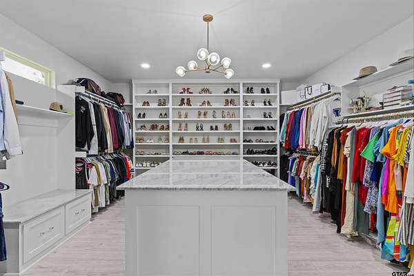 Step inside this stunning home built in 2021. This impeccable property features 4 bedrooms and 3.5 bathrooms, situated on a sprawling 4-acre lot. This impeccable property boasts sleek modern finishes, creating a sophisticated and elegant ambiance. With beautiful gold fixtures throughout, subtle accent pieces and large floor to ceiling windows, this home is breathtaking. The gourmet kitchen is equipped with stainless steel appliances, a large accent island, double oven, and a convenient walk-in pantry. Enjoy a custom wine bar and chiller, for entertaining guests or enjoying a quiet night in. The primary suite offers a large open concept, along with expansive private bathroom and walk in closet. Primary bath features elegant finishes, double vanity, soaker tub, double walk-in shower, and an abundance of storage. The exquisite primary closet features island storage, accented with a beautiful golden chandelier, this closet is one of a kind. Outside this property features a large backyard with mature trees providing shade and privacy. You'll also find an awe-inspiring outdoor fire pit surrounded by large wooden swings, creating a cozy and inviting outdoor space ideal for expansive gatherings. Don't miss this opportunity to own a truly exceptional home. Schedule a viewing today and envision yourself living in luxury and comfort in this remarkable property.