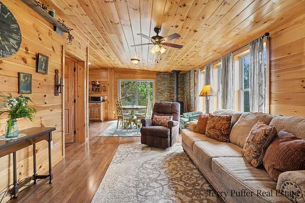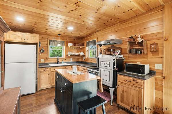 Welcome to this charming 2-bedroom, 1-bath home built in 2019, located in the peaceful setting of Shelby, MI. This property offers the perfect blend of modern living and country charm, featuring a spacious 45x30 barn, a 12x34 hay barn, a chicken coop, and a garden, ideal for hobby farming or outdoor enthusiasts. Enjoy the natural beauty of the land with a serene creek running through the property, as well as a fish pond. The established orchard includes a variety of fruit trees, from apples and cherries to peaches and more, providing both beauty and bounty. Inside, the home offers comfortable living with forced air heating, a full poured concrete basement, and a bathroom complete with a walk-in shower. The kitchen comes equipped with a refrigerator and microwave, while the unique Amish-style stove from the 1930s adds character and rustic appeal.