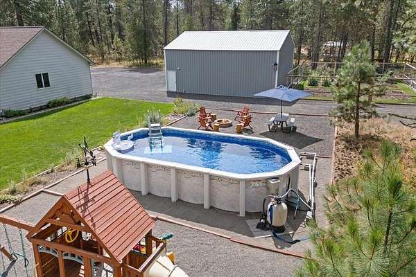 Will you spend more time inside this spacious Rancher home with main floor living, and ample windows, or outside, enjoying activities on the trails, in the shop, the pool or the beautiful yard? The truth is you will love it all on this peaceful property, set on 4.79 acres in Chattaroy. A quick 15 minutes to the Northside Costco allows convenient access to amenities, while the beautiful location invites you to unwind and enjoy the wonders of nature and the calm of the country. Inside you will find a kitchen with double ovens, gas range, granite counters and an open flow perfect for hosting. With a primary en-suite bedroom on one side of the house, and additional living areas on the opposite end, this is the perfect set up to allow both guests and residents privacy all on the main-floor. A full bath and two egress bedrooms (one currently used as a quilting room) on the lower level, as well as a workout area, pool table space and multiple seating areas, there is plenty of room to settle in and call this home.