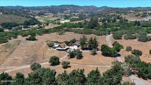 Price reduced 54,900 !! Welcome to a stunning estate nestled at the end of a private cul-de-sac, set on 20 tranquil acres in the picturesque Santa Rita Hills. This remarkable property harmoniously blends modern design with the natural beauty of its surroundings, just minutes away from the charming towns and the Santa Ynez Valley.The striking Modern A-frame home boasts a large open porch, soaring ceilings, and expansive windows that invite an abundance of natural light while framing breathtaking panoramic views. The open-concept layout seamlessly connects indoor comfort with the beautiful landscape, creating a true sanctuary for relaxation and rejuvenation.Thoughtfully updated, the home features sleek appliances, hard surface flooring, a new stainless steel sink, and air conditioning for your comfort. Additional bonus rooms with a sink area offer excellent potential for a junior ADU, making it ideal for guests, rental income, or multigenerational living.Convenience is enhanced with a detached two-car garage, while the nearly level usable land presents endless possibilities for your dreams. Whether you're envisioning an equestrian paradise, a boutique vineyard, or a private retreat, this property serves as a canvas for your aspirations.Plans for a second building site have already been proposed, including a 6,000 sq ft residence with a separate electric meter. This secluded estate not only offers privacy but also provides easy access to wineries, golf courses,beaches Home to be sold AS Is with new price reduction!!