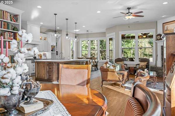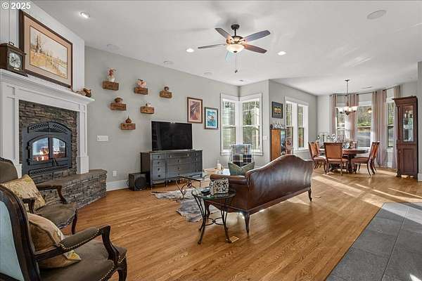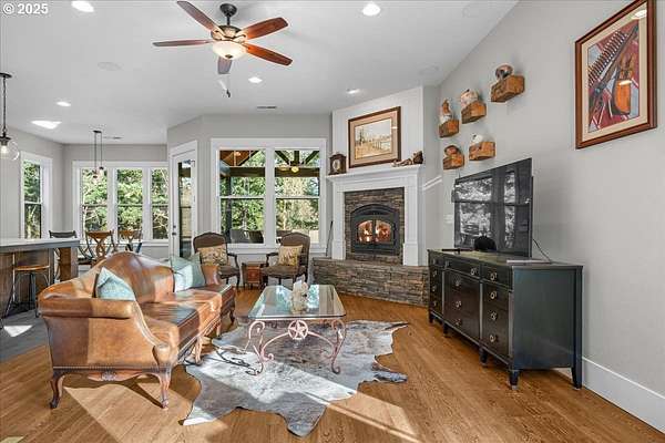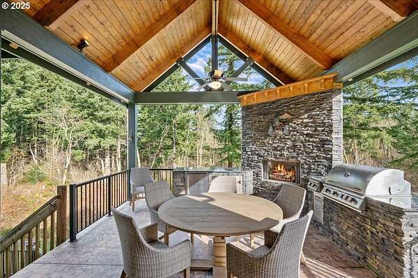 Thoughtfully designed and well planned, a one of a kind true custom built by Fazzolari Construction. Peaceful and relaxing setting on 5 acres surrounded by trees and nature. Impeccably maintained and cared for, a perfect blend of style and comfort! This home lives like a sprawling one level with primary suite, secondary bedroom, office and laundry all on the main floor. The inviting and open greatroom blends kitchen, dining areas and living room together perfectly. Real finished in place oak hardwood flooring, craftsman style details and trim, and unmatched quality upgrades including Hayes Cabinets, Vermont Danby Marble and Soap Stone kitchen countertops. The kitchen is absolutely stunning! Huge island with eating bar, under and interior cabinet lighting, walk in pantry with space for a coffee station, cookbook shelving, study center and even a heavy duty built in mixer lift! Spacious primary suite offers a large walk in closet and tiled bath with soaking tub, walk in shower and dual sinks with quartz countertop. Both bathrooms on the main floor have heated floors and they all have beautiful tile work and details. Upstairs you will find a wonderful loft/ flex room wired for 7.1 theater surround sound, bedroom and a bath making for a perfect retreat for guests! Gorgeous and amazing covered and vaulted outdoor living area flows seamlessly from the kitchen and greatroom. With built in fridge, storage, propane BBQ and fireplace, ceiling fans and speakers too! Walk in crawl space is very large with tall ceilings, CAT5 wiring, separate electrical panel and ready to be converted into an ADU or additional living space. Enjoy the amazing fruit orchard, raised garden beds and chicken coop all ready to use. Hi speed internet with Starlink satelitte system in place and included. This home is also in the highly rated and sought after Camas School District. Ask about the features and amenities list!