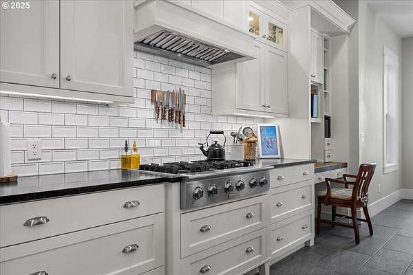 - Appliance Garage, Builtin Oven, Cooktop, Dishwasher, Double Oven, Free Standing Refrigerator, Gas Appliances, Island, Marble, Microwave, Pantry, Plumbed For Ice Maker, Range Hood, Solid Surface Countertop, Stainless Steel Appliance, Tile