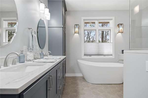 Tucked into the beautiful Woodlands of Livonia, this custom-built home offers privacy, nature, and easy one-level living. The neighborhood features 5 miles of paved walking paths winding through mature trees, wetlands, and rolling hills, giving it a peaceful, tucked-away feel. From the moment you arrive, you’ll notice the private setting surrounding this home. Inside, the main floor features a spacious primary suite with patio doors leading to the backyard, a fully updated spa-like bathroom with separate tub and shower, double vanity, and a large walk-in closet. There is also a main floor office that could work as an additional bedroom. The living room offers high ceilings, custom built-ins, cozy sitting nooks, a gas fireplace, and plenty of natural light. Hardwood floors run from the entry into the kitchen, which features abundant cabinet and counter space, stainless steel appliances, and a granite center island. Main floor laundry and a half bath complete the level. The walk-out lower level includes a large family room, two additional bedrooms, and a flexible space perfect for a hobby room, playroom, or man cave. A great opportunity to enjoy space, privacy, and a beautiful natural setting.