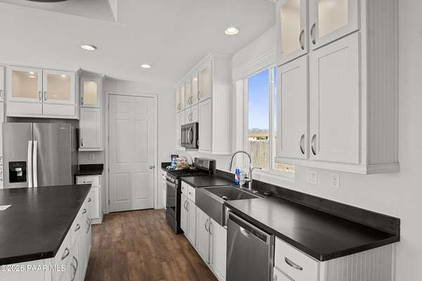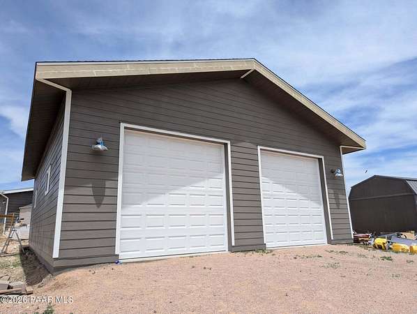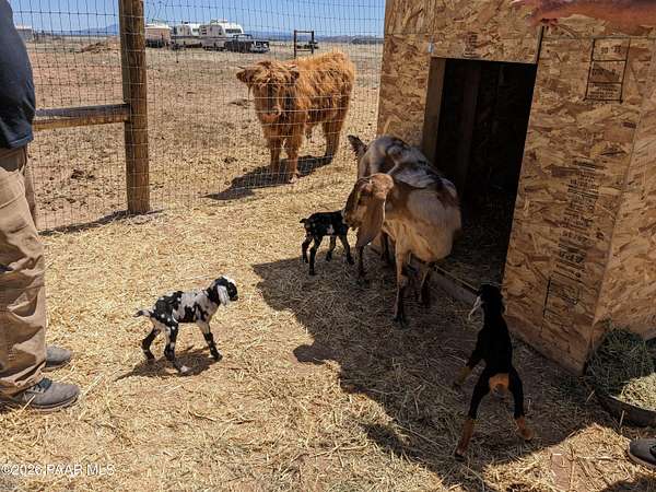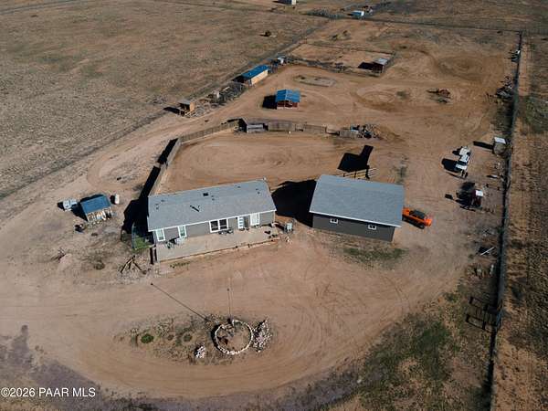 Want your own homestead? Due to medical issues, this 'forever home' is now available, all the hard work is done! Beautiful 2x6 construction Cavco Durango Great Basin home with 40# snow load roof for extra insulation, 3 bedrooms and 2 full baths, plus laundry room and walk in pantry, all with Luxury Vinyl Plank commercial grade flooring. Appliances all stay, so move right in! Large 32x40 Enercept SIPS insulated panel garage with 12' side walls and 16' peak, reinforced cement for a lift! Fully fenced, with chicken mansion and coop, goat/pig pens and cow pen plus animal shelters. Short dirt road, just off pavement, with amazing views from every direction! Come make this ranchette your haven. Hauled water, propane, 400 amp electrical panel. Bring your family and animals and enjoy the quiet Paulden life. Grocery store, library, hardware store, dollar store and post office all within 6 miles. Seller is happy to answer any questions, she lived there since December 2020 and managed the build. Pro photos coming soon!