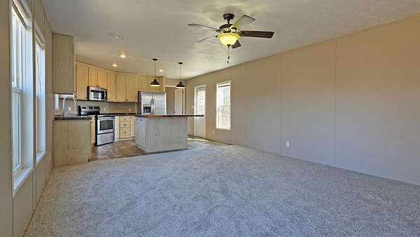 Welcome home to nearly five unrestricted acres in the beautiful Appalachian foothills of Pulaski County. This 2019 Southern Energy singlewide offers three bedrooms, two full baths, and 1,216 square feet of thoughtfully designed living space, all situated on a paved county road just minutes from Somerset. Step inside to an inviting open concept floor plan where the living room flows seamlessly into a stunning kitchen. The kitchen features a center island with dark granite look countertops, light wood cabinetry, stainless steel appliances including a side by side refrigerator with ice and water dispenser, stylish pendant lighting, and durable vinyl flooring. The spacious primary suite offers plush carpeting, a ceiling fan, and a private bath complete with a walk in shower, large vanity with granite look countertop, and a built in linen cabinet. Two additional bedrooms share a full guest bath with a tub and shower combination. Enjoy peaceful country mornings from the front deck overlooking open acreage and mature trees. Whether you are searching for a private retreat or a starter home with room to grow, this land and home package truly checks all the boxes.
