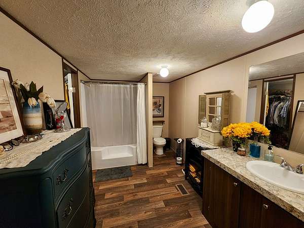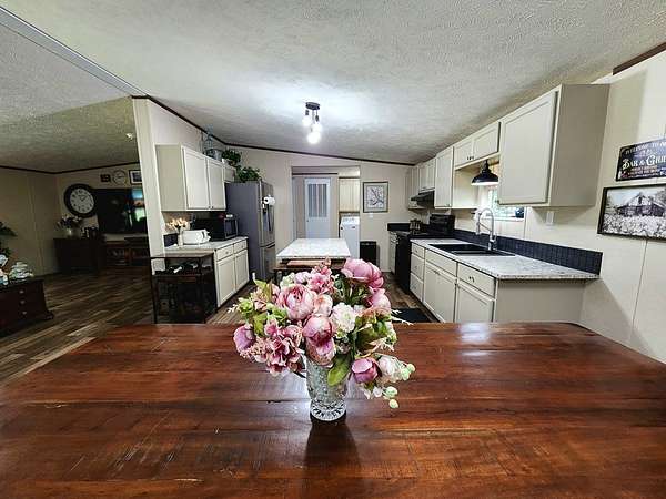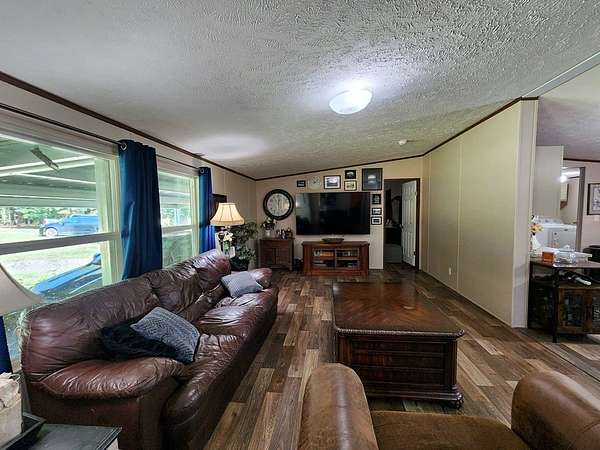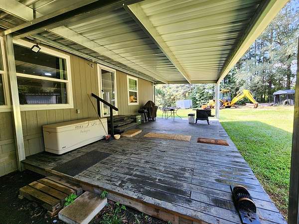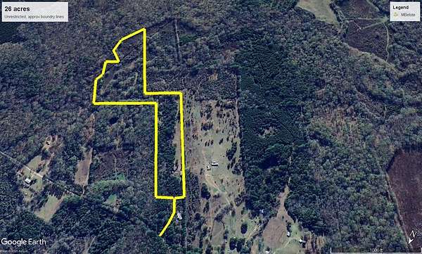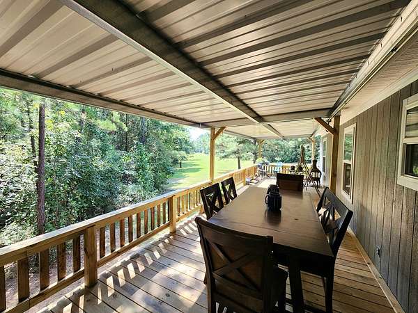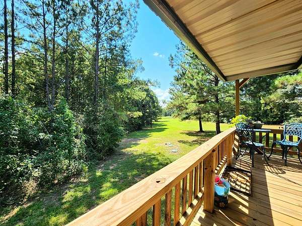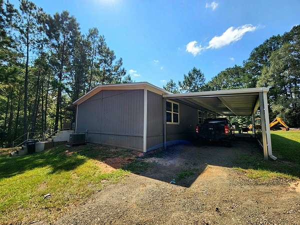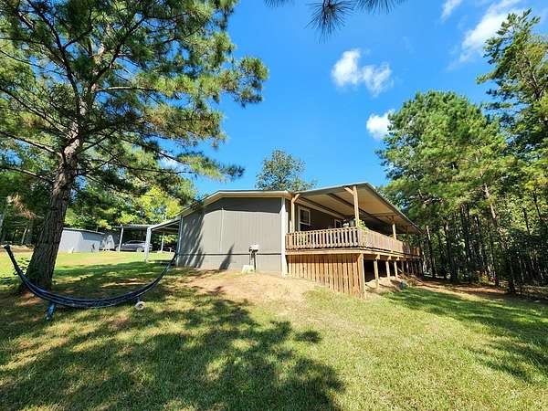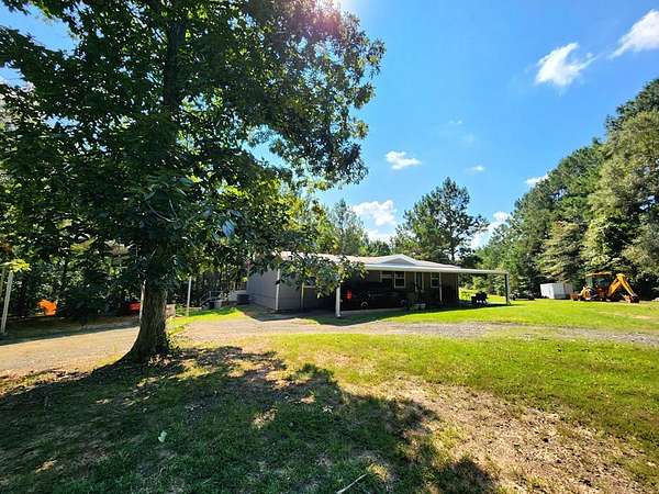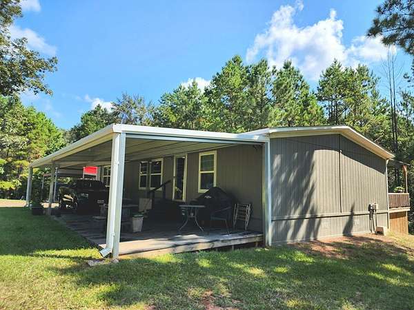 Nestled in nature's tender embrace, this 26+/-acre haven unfolds like a living sonnet. Rolling pastures, invite dreams of grazing herds or wildflower-strewn picnics. Among them, mixed timber weaves a woodland tapestry: ancient oaks with twisted limbs, shagbark hickory, and steadfast pines filtering sunlight into golden mosaics on fern-laced floors. Wildlife poets roam freely--deer gliding at dawn, turkeys parading meadows, foxes slipping slyly through shadows, owls serenading starry nights. A cozy 3-bed, 2-bath mobile home offers sunlit rooms and a covered front and rear porch for dawn brews. Quality updated kitchen cabinets! A double RV cover awaits, hookups for utilities are in place and its own septic-a mobile sanctuary in the wild. Ample parking with multiple double and single carports! 2 deer stands and feeders on site. Here, time dissolves into peace, rooted in beauty! Utter privacy reigns; no eyes intrude, only leaves rustling and streams murmuring. Realtors, bring offer!