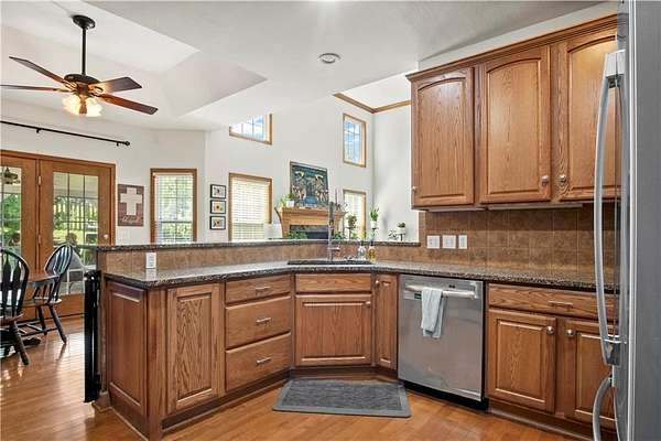 Enjoy outdoor living year-round from the covered back deck overlooking your estate-sized lawn. The long driveway leads to not only an attached garage but also a 30x40 detached shop, providing a total of six garage parking spaces--perfect for car enthusiasts, storage, or creative space.