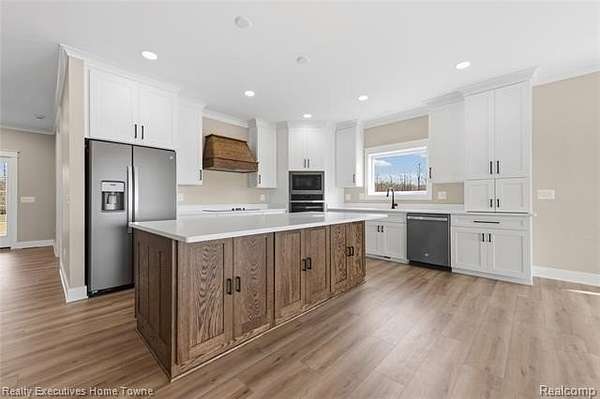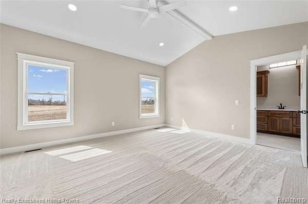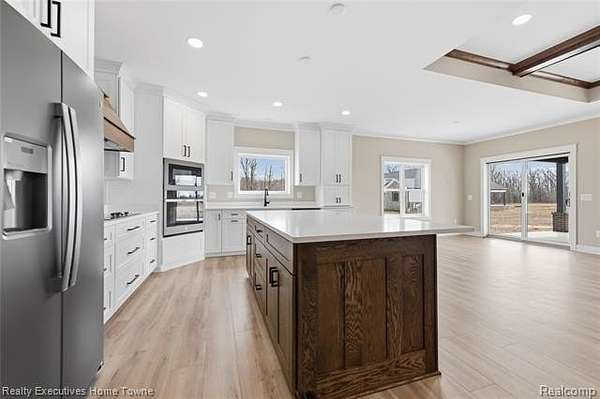 Custom-built in 2025, this stunning ranch home offers quality craftsmanship and thoughtful design throughout. Featuring 2x6 exterior construction, solid core interior doors, and soaring 9-foot ceilings, every detail was carefully considered. The spacious great room showcases a beautiful tray ceiling and a cozy fireplace, creating the perfect gathering space. The kitchen is outfitted with custom cabinetry and quartz countertops, which continue seamlessly throughlut the home for a cohesive, upscale feel. A full basement offers endless potential for additional living space. Enjoy outdoor living on the covered back porch-ideal for relaxing or entertaining-while taking in the peaceful setting on 2.5 acres. The 3-car insulated garage provided plenty of space for vehicles, storage or hobbies. Located in Richmond Township within the Armada School District, this home combines modern construction with country charm.