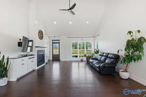Est $2,552/moCustom-built Craftsman-style home on 2.3 acres with stunning lake view! This 4BR/2BA home features an open floor plan with cathedral ceiling, gas fireplace with built-ins, and no carpet throughout. The kitchen offers granite countertops, gas stove, island, and walk-in pantry. The primary suite includes a tile shower with dual shower heads and a large walk-in closet. Enjoy a spacious patio, covered front porch, fenced yard with doggie door and electronic collars, plus a laundry room with dog wash. 3-car garage, mudroom with option to make 1/2 bath, and just minutes to the interstate!