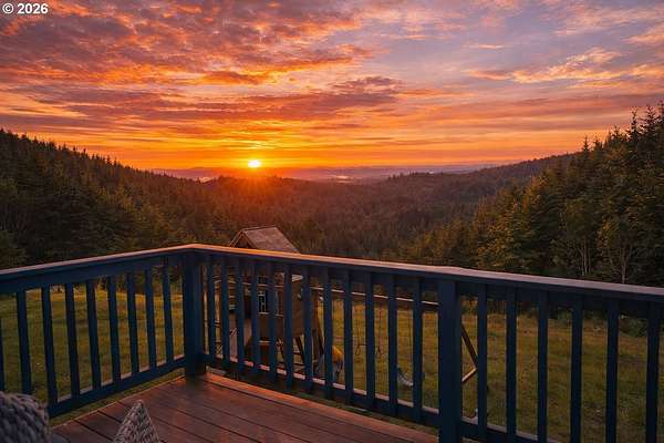 This Craftsman-style home captures breathtaking views of the coastal mountain range from the expansive back deck and picture windows that line the rear of the home. Situated on 2.16 acres, the property offers RV parking with power, a small barn ideal for chickens or small livestock, and plenty of open space to enjoy peaceful country living. The main level features an open-concept kitchen, dining, and living area with a cozy wood-burning fireplace, abundant natural light, and scenic views from every angle. The spacious primary suite is located upstairs and includes a walk-in closet and a private ensuite bath. Downstairs, you'll find two additional bedrooms, a family room, and a second wood stove-perfect for relaxing or entertaining.Located just 30 minutes from Hillsboro, this property offers the perfect balance of privacy and convenience-an ideal retreat from the everyday.