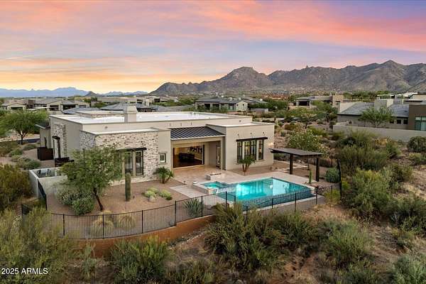 Est $15,071/moListing includes additional 1.7 Acre NO HOA parcel, totaling 3.15 Acres of desert serenity! Set against the dramatic backdrop of Troon Mountain, this 4,309 sq ft home offers an inspired fusion of contemporary luxury and unobstructed mountain views, within the exclusive gates of Boulder Ranch. A true dual primary floor plan, each primary suite features a spa-like bathroom, while the attached casita is ideal for guests. Perfect for seamless indoor-outdoor entertaining, the open-concept kitchen flows into the expansive great room, opening to a stunning backyard oasis - with heated pool and spa, fire feature, and misting system. Proximity to world-class dining, shopping, golf, and outdoor recreation. Inquire today!