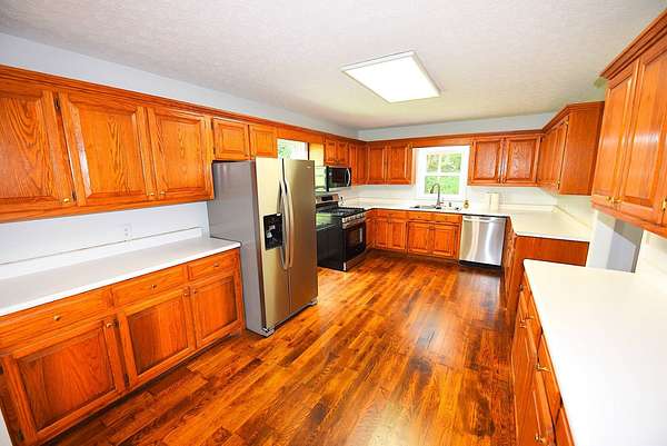 SUMMARY This one-of-a-kind property offers everything for a multi-family or company retreat in a very natural, remote Kentucky environment - peace, quiet, refuge, nature, hunting, fishing, hiking, ATV recreation, animals, farming, equine care. Come live your dream in the country on 124 special Kentucky acres just outside the small, peaceful community of Summer Shade. A new 3,000 sq ft house has been built on the hilltop with breathtaking views. It features 5 bedrooms and 3 bathrooms on two floors and a two-car garage. The farmhouse next to Nobob Creek in the valley, which features 3 bedrooms and 2 bathrooms, has been completely remodeled and updated. A new barn and lambing building have been built, in addition to the existing horse barn. Three water wells provide ample water for domestic and farming purposes. The 124 acres offer great variety in woods, terrain, creeks, ponds, cropland, and pasture. NEW HOUSE: An exterior wrap-around sitting porch invites to relish the views, wildlife, and peace of this remote piece of Kentucky heaven. The main floor features an open floor plan, cathedral ceiling, propane fireplace, a master bedroom, walk-in closet, a master bathroom, and a full guest bathroom and guest bedroom. Upstairs provides a large storage space. The downstairs part of the house includes a general purpose recreation room, a full bathroom, three bedrooms, and more storage. There are storage closets throughout the house. Measuring both floors results in just under 3,000 sq ft. This house is available furnished, as is. DETACHED GARAGE: A two-car de-attached garage is adjacent to the house. Farmhouse: This beautifully renovated house has been completely renewed and updated with quality materials, including a new HVAC system. It features full front and rear sitting porches with views and sounds of Nobob Creek and the pasture and growing crops. On the main floor there is a full guest bathroom and also a master bedroom, walk-in closet, and full master bathroom, front room, dining room, kitchen, and laundry room. Upstairs offers two bedrooms and a sitting loft area. BARN 1: This older horse barn features six horse stalls, storage, and a shed area and measures 30'x50' enclosed and 12'x50' attached shed. BARN 2: A newly constructed, large equipment barn measures 44'x62' with a covered shed at the rear. A water well and grain silo are nearby. BARN 3 - Lambing barn: This newly constructed barn with nearby grain silo offered sheep care. LAND: The 124 acres have a great variety of uses, including about 30 acres of cropland, fenced pasture lands, mature hardwoods, three stocked fishing ponds, three producing water wells, a fertile valley and hardwood highlands, ATV and horse trails. LOCATION: The location of this property is at the end of Cherokee Trail (a county maintained roadway), which branches off of Nobob Road, and is less than two miles from the small community of Summer Shade, Kentucky, where a gas station, a diner, a post office and bank branch are available. Kentucky Highway 90 runs through Summer Shade and provides east-west connections to Glasgow, Burkesville, Albany, and Lake Cumberland, Dale Hollow, the Cumberland River. UTILITIES: The internet is fiber optic from SCRTC. Power is from Tri-County. Water is from three water wells. RESTRICTIONS: There is no building department, and there is no zoning in this county. There are no use restrictions in the deed. TERRAIN: The topography consists of a relatively level, usable and accessible valley which rises graduallty to relatively flat, wooded highlands. HUNTING & WILDLIFE: There is an abundance of every kind of native wildlife, especially whitetail deer and wild turkey, on this special property. RECREATIONAL LAKES: In adjoining counties, many fishing and recreational lakes and rivers can be easily reached. Examples : Green River, Dale Hollow, Barren River, Cumberland and Nolin Lakes. LISTING AGENT: Please call John F. Charles for a tour of this beautiful prope