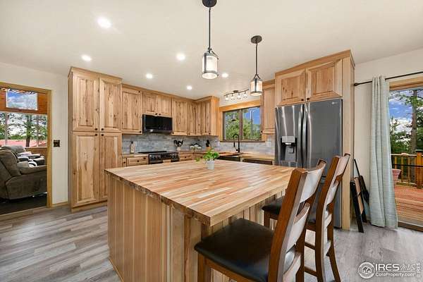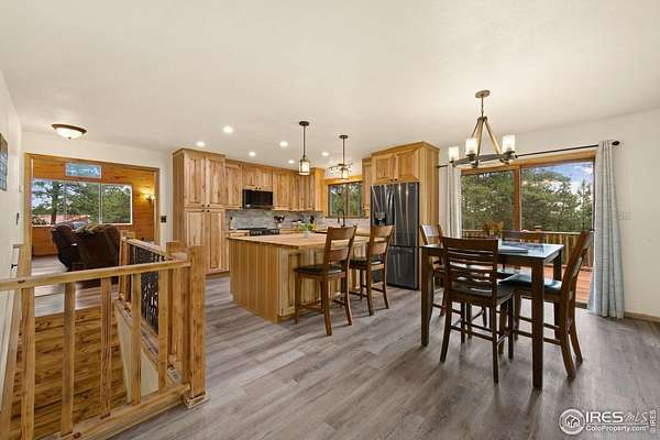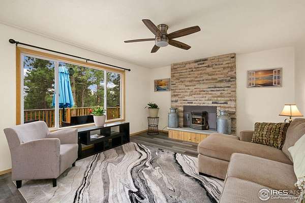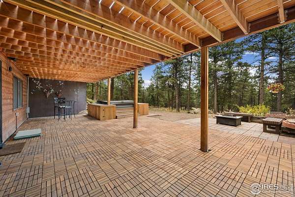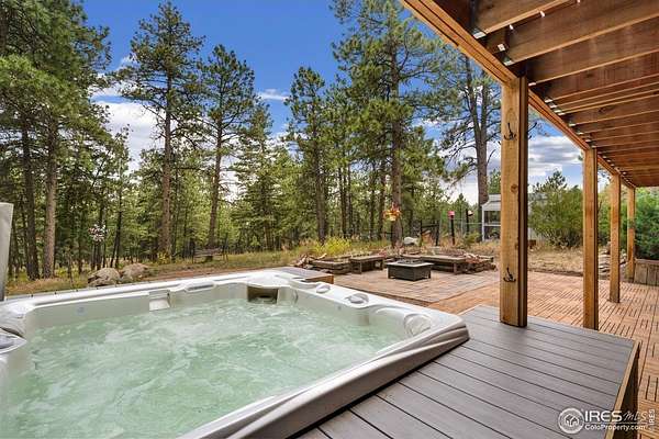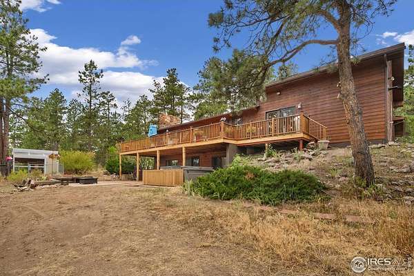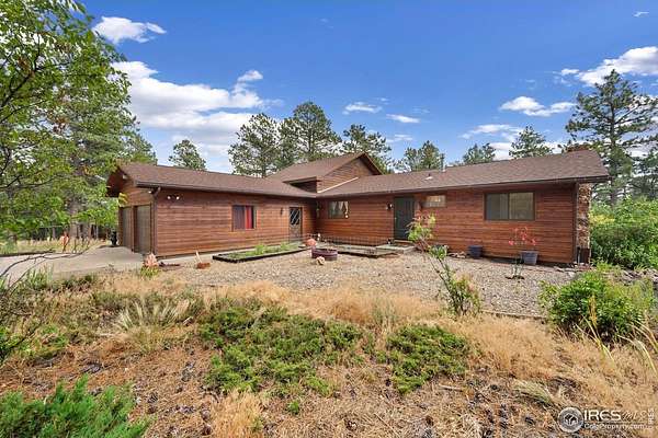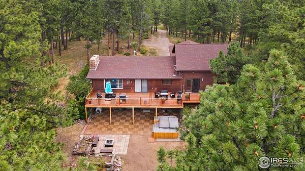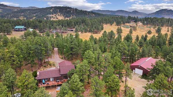 Escape the noise and embrace total tranquility on this secluded 9.9-acre mountain retreat surrounded by nature. Experience unmatched privacy and a true Colorado lifestyle where mature trees stretch across the property and the wildlife is your closest neighbor. Whether you're looking for a weekend hideaway or a full-time escape, this one delivers. The home itself is a comfortable 3-bedroom, 2-bath ranch-style layout with a fully finished walk-out basement, giving you plenty of flexible space to spread out. Numerous updates throughout the home bring a fresh, touch while still keeping a warm, mountain feel. The spacious kitchen is a blend of rustic warmth and modern convenience, featuring butcher block counters, stainless steel appliances appliances, and plenty of prep and storage space. One of the standout features is the expansive lodge-style family room addition, designed to impress with soaring ceilings, warm wood tones, and plenty of space for hosting. A huge, raised deck spans the back of the home, offering the perfect perch to soak in the surroundings. The covered patio features a hot tub area that promises year-round relaxation, as well as a firepit spot for starlit conversations and marshmallow roasts. The property also includes a 2,665sqft Cleary outbuilding with room for tools, vehicles, or workshop space, as well as a 485sqft two-stall barn for your horses. This one-of-a-kind retreat blends rustic charm, modern comforts, and unbeatable space to roam.