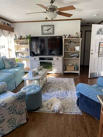 Immaculate doesn't begin to describe this exceptional new offering.This beautifully maintained property has been thoughtfully updated with top-of-the-line appliances and a whole-house generator for peace of mind. The sun-filled eat-in kitchen opens to an inviting living room, creating a warm and welcoming space.With a bedroom and full bathroom on each end of the home, the layout offers ideal convenience and privacy. The attached heated sunroom is a year-round bonus, while the covered carport transitions seamlessly into a patio?perfect for summer relaxation and entertaining.This home is securely situated on a cement pad with tie-downs,, and features insulated skirting. Nestled on three beautifully landscaped acres with seasonal water views and a fully paved driveway, the setting offers both practicality and charm.Once you visit and experience this home, you won't want to leave.Enjoy the photos!