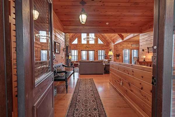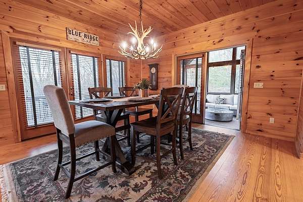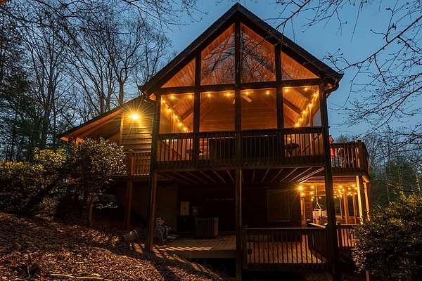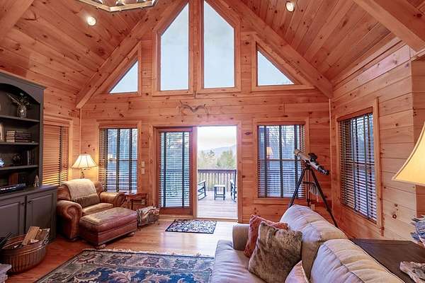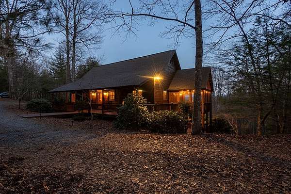 Experience refined mountain living in the highly sought-after Aska Adventure Area, where this private 11.5-acre retreat bordering US Forest Service land, offering exceptional seclusion and uninterrupted long-range mountain views. This well-appointed 3BR/2.5BA home with primary suite on the main level features an open-concept design with soaring ceilings, a stone fireplace, and expansive windows that bring the outdoors in. The kitchen is thoughtfully designed with an island for gathering and entertaining, while multiple outdoor living spaces—including covered decks and a screened porch—provide the perfect setting to enjoy the natural surroundings. The terrace level offers two spacious bedrooms and an additional living area with wet bar, ideal for guests or extended stays. Recent updates include a new roof, HVAC system, and water heater, along with smart home features for modern convenience. Ideally located minutes from outdoor recreation and a short drive to Downtown Blue Ridge, this property is well-suited as a primary residence, luxury retreat, or investment opportunity.