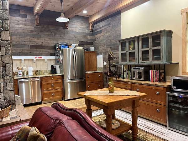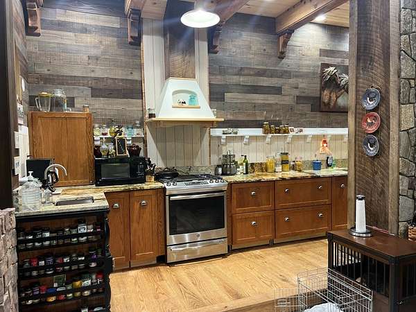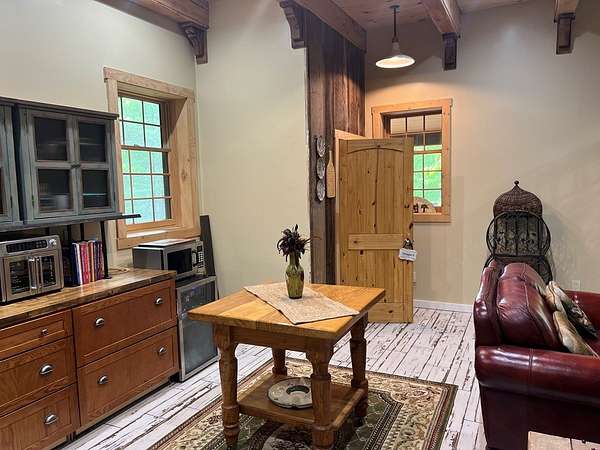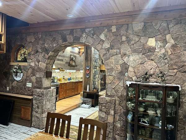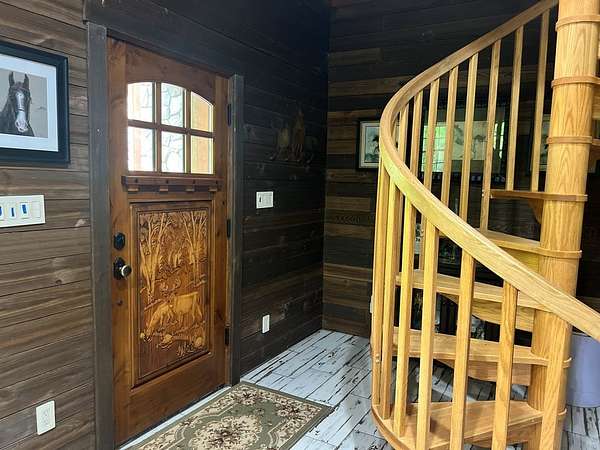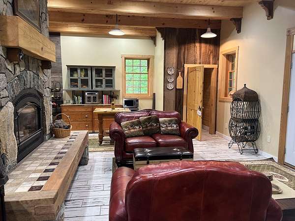 Motivated Seller looking for outdoor and horse enthusiasts! Avid hunter? No problem; Access the National Forest from inside Collins Cove. Here is your chance to own a custom 4BR, 3.5 bath home with all the amenities you need to enjoy the great outdoors on over 10+ acres, and Hundreds of miles of forest trails are just a stone's throw away, perfect for hiking and horseback riding, and hunting. A community pond is stocked with bass, bluegill and sunfish and minutes from trout fishing on Cripple Creek and New River. Home features tile and hardwood floors, oak cabinets, stainless steel appliances, spacious master suites with cedar lined walk-in-closet, along with other unique features like poplar bark siding and stonework inside and out! Walk through a custom hand-carved door to a formal dining area and great room. The centerpiece of the kitchen and great room is a beautiful stone gas fireplace. outside you'll be greeted with breathtaking views of the National Forest as you relax and watch the sunset from the front porch that is surrounded by mountain laurel railing and stonework. The back of the house features a wrap around deck with a cozy covered swing area perfect for entertaining and relaxing. Travel down the path beside 5 acres of newly fenced pasture to the barn, which features a spacious feed/hay area, five large stalls, and ample room for equipment. Additionally, there's an exciting prospect of building a small cabin at the fully equipped camper site which has it's own septic with access to power and water supplied by the house. Saddle your horses and ride from your home and access the Moore Trail, Raven Cliff Trail and Virginia Highlands Trail. There is 8.17 adjoining acres with original cabin to the land with solar panels for lights and water with an outside shower and privy See MLS# 99825. Call listing agent for your private tour.