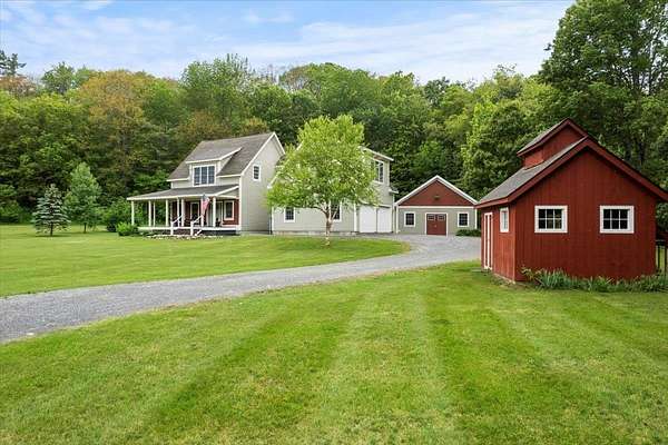 Turn-key living awaits at this beautifully maintained 3-bedroom home set on a level, landscaped lot in Arlington. The main level features an inviting open layout with warm wood floors and a well-appointed chef's kitchen, perfect for both everyday living and entertaining. Upstairs, the thoughtfully designed layout offers three spacious bedroom suites, each filled with natural light and featuring its own private bathroom. Enjoy year-round comfort with central air conditioning and the convenience of an attached two-car garage. A standout feature is the detached, heated rec space--currently used as a home office and gym, and previously a woodshop--offering flexibility to suit your needs. Outdoors, relax on the large covered wrap around porch, perfect for quiet mornings or evenings in a rocking chair. The property also includes a backyard garden shed and a charming sugar house-style shed out front. With a total of 2.26 acres, this parcel offers room to grow, garden, or simply relax. Ideally located in Southwestern Vermont, just 3.5 miles to Arlington village, 11 miles to Manchester, and 16 miles to Bennington.