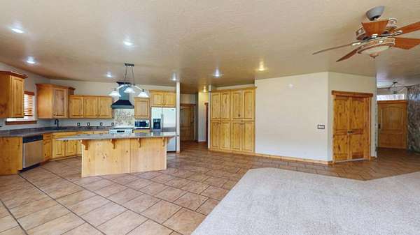 This large home sits on 11.79 acres, nestled up against the foothills in peaceful Kanarraville. Enjoy the stunning views from the large living room windows while in the open concept kitchen/living area. This home offers 6 bedrooms plus office, 3 full baths, tons of storage, a full walk out basement with a wood burning stove, and a large space that could be a great exercise room or dance studio. The home is also equipped with a 6 stall horse barn with workshop, corrals, riding area and round pen. Not to mention there's plenty of outdoor space to enjoy the serenity, peace and quiet that a small town provides while only be minutes from Cedar City.