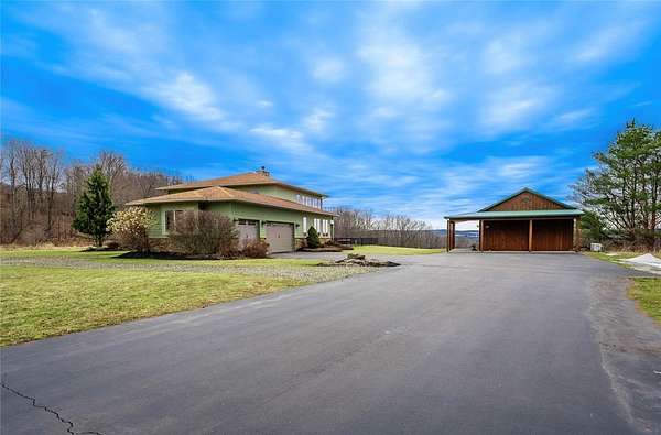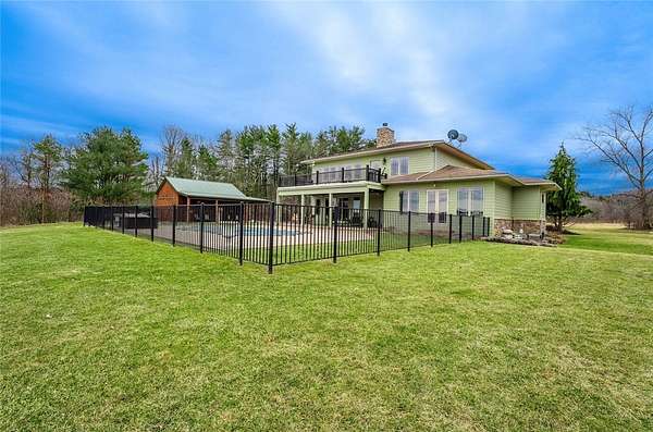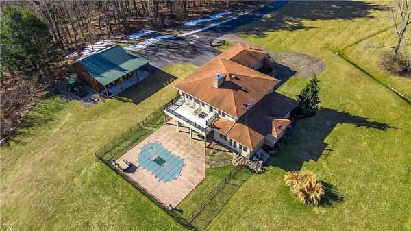 Centrally located in Pine Valley. Only 20 minutes from Watkins Glen Wine Trails and Corning's Gaffer District, this dream home holds four bedrooms, two full baths, two 1/2 baths, and a game room that walks out to a deck looking over the hillside that takes your views miles away! Built in 2008, this 3,787 sq ft home with an attached three-car garage and a barn on 40 acres was meticulously crafted with every thought in mind. From the nine pane custom windows and doors that flood the home with beautiful natural lighting, the geothermal heating and air conditioning efficiency teamed up with the cement siding to keep the home energy efficient, to the buried electrical lines so the landscape would not be interrupted! The open and spacious interior was remodeled with new hardwood floors and freshly painted in 2024. The custom kitchen features granite counters, beautifully finished cherry wood cabinetry, high-end appliances, and enough space to store your collection of tools and materials in the large walk-in pantry. Talk on the streets has said this kitchen has earned the chef's kiss. Walk into the grand living room with views of the hillside at almost every angle, to the sliding glass doors that bring your indoor living, outside. The large covered patio doubles your entertaining space while the built-in pool brings the activities! 10+ acres of cleared fields sit on the edge of the property, separated by trees waiting to be utilized for whatever your heart desires! Next door sits Cals Legacy Acres, where horse lovers and their best friends can utilize boarding, training, riding lessons, and other programs! Don't miss your chance with this dream property!