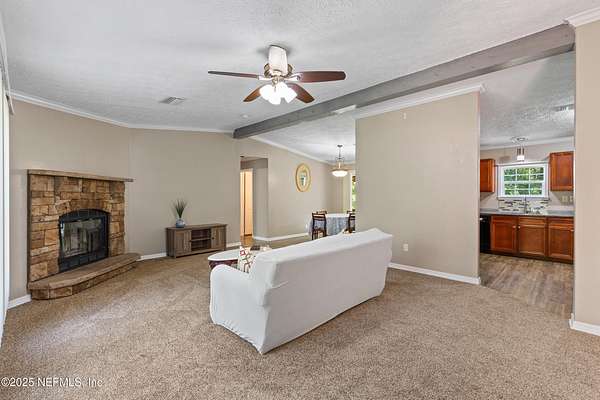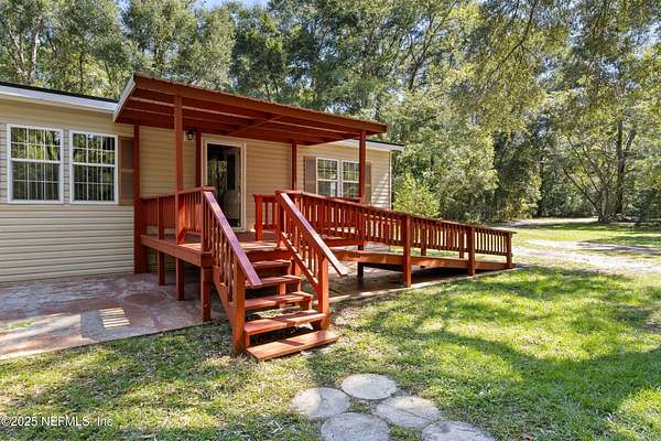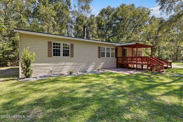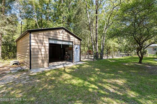 Eight plus acres of private and peaceful country setting, with room to spread out in every direction! This home has been lovingly maintained, updated and is spotlessly clean. Fresh paint, new roof (Aug 2023), new water heater (Aug 2025) and new carpet in living room and owner's suite (Aug 2025). 50 amp outlet and water hookup onsite for your RV. Animal pens with dedicated water lines are waiting for your four-legged family members. 25x20 outbuilding provides electric and loft for added storage. Minutes away from Itchetucknee Springs and High Springs grocery stores and restaurants. Move-in ready and worry free with 1 year home warranty included!