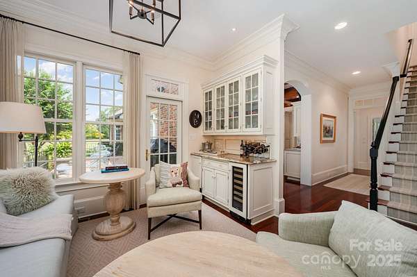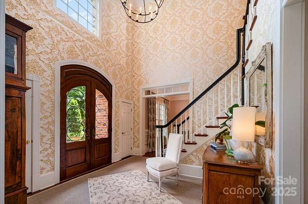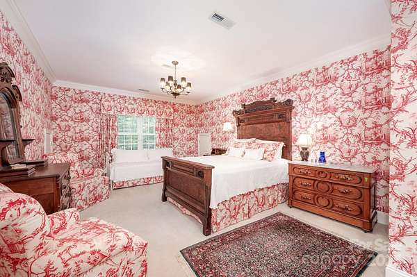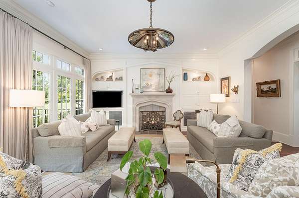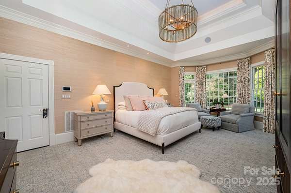 Experience refined living in this exquisite brick estate tucked within the prestigious gated community of Maple Grove, in the highly sought after Lake Norman area of North Carolina within minutes to Denver, NC and just 30 minutes to Charlotte Douglas International Airport. Perfectly positioned on 5+ private acres and backing to a peaceful 68-acre conservancy with wooded trails and lake access, this home offers unmatched serenity and elegance. A dramatic two-story foyer sets the tone, leading to an elegant dining room, a versatile music room/study, and a dedicated office adorned with custom built-ins. The sophisticated living room features a striking limestone fireplace, designer shelving, and an expansive wall of windows that flood the space with natural light and breathtaking views. The chef-inspired kitchen is designed for both beauty and function with quartzite countertops, custom paneled appliances, gas range, and an oversized island. The adjoining sunroom enhances every gathering with its dry bar, wine cooler, and icemaker. The first-floor primary suite delivers true luxury, showcasing lighted tray ceilings, a fireplace, bay window seating area, and a spa-caliber ensuite complete with a Jacuzzi tub, walk-in shower, and Toto bidet. Additional living areas include a spacious game/media room, custom craft room, and a private guest suite with its own entrance and kitchenette ideal for extended stays. Outdoor amenities are crafted for relaxation and entertaining, including a screened porch, expansive patio, and deck overlooking the tranquil landscape. A detached carriage house offers even more flexibility with a 2-car garage, garden room, and climate-controlled bonus space. This extraordinary residence is a rare offering-combining luxury, privacy, and convenience. Enjoy a quick 20-minute drive to Birkdale Village. Lake Norman's boat launches and recreational access, the NEW State-of-the-Art Saine Family Library (opening 2026), shopping, dining, groceries and banking are all within minutes!