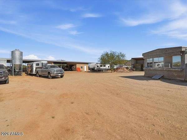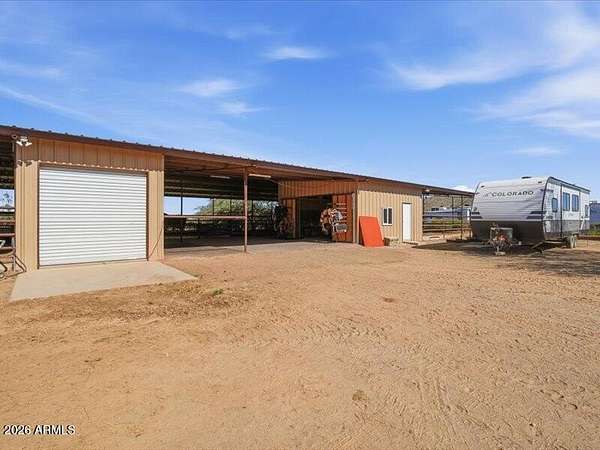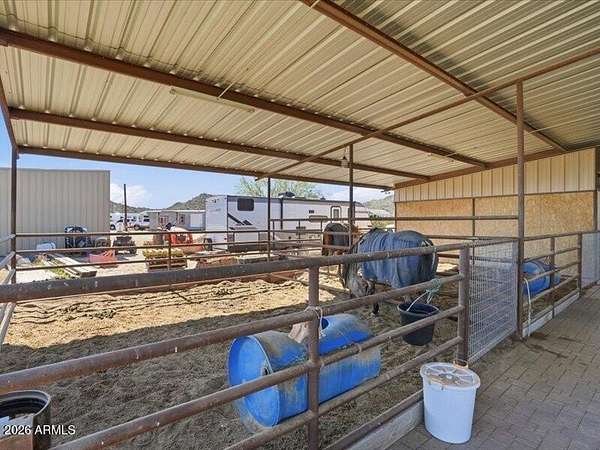 Opportunities like this don't come around very often! NO HOA, 2.11 acres built for the people who LOVE horses! Just move in and ride to your heart's content in your own arena with spectactular mountain views. Barn with 11 - 20'x20' stalls with auto waters + a mare motel with 6 12'x24' stalls professionally built! 20x12 Feed Room + Hay storage + a FABULOUS 20'x20' tack room with a ton of bridle hooks + Pellet bin + brick paver walkways in the barn to keep the dust under control. Entire premiter fenced in pipe & top rail. If you would build this facility from scratch you would be spending over $250K! Live in the super cute 2 bedroom 1 bath mobile home while you build your dream home or come stay the winter in this cute mobile and enjoy everything the property has to offer! Close to Horsehoe Equestrian center, San Tan Flats, new Target, Walmart, shopping, dining and all the fun Queen Creek has to offer. Or go ride or hike in the San Tan Mountains and enjoy all that the San Tan Regional Park has to offer. 2 RV plug-ins. Value is in the land and the amenities the property has.