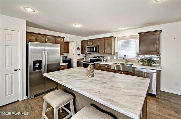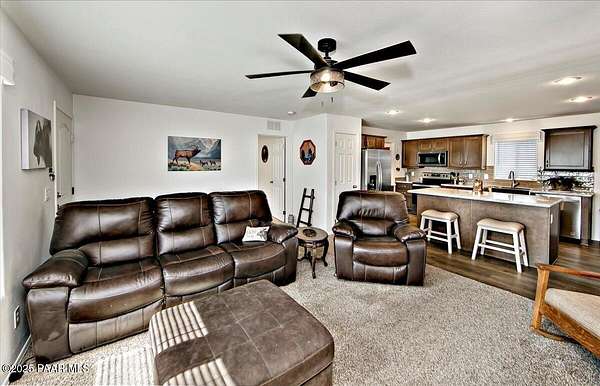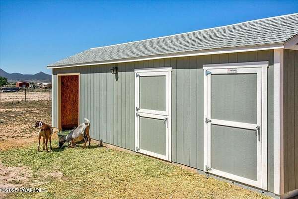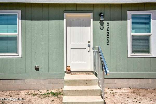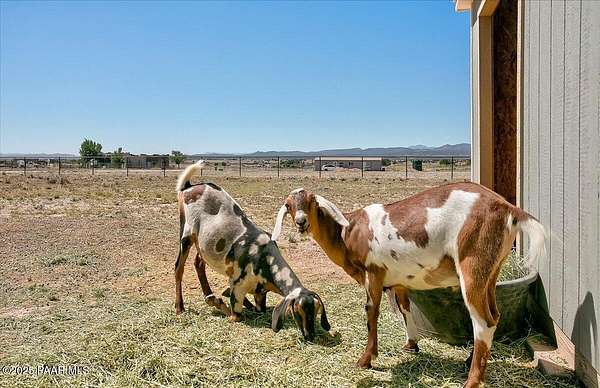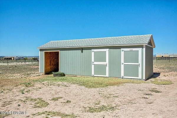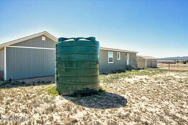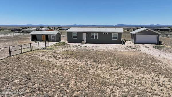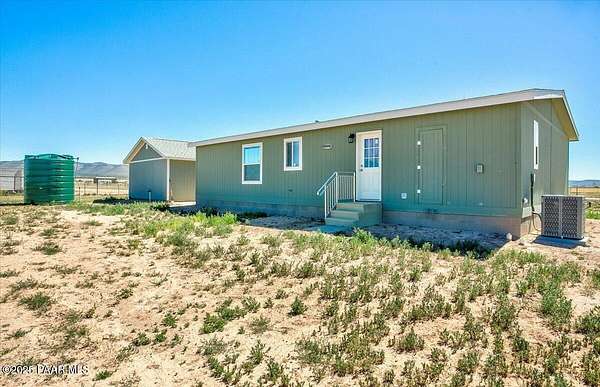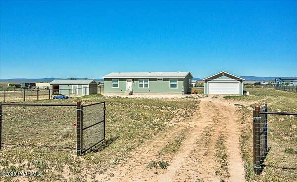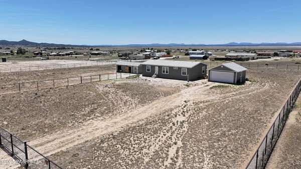 You will love this newer CAVCO 2024 home, complete w/ 3 bedrooms, 2 baths. Big, open, split floor plan that lives much bigger than its 1280 sq. ft, has large picture windows, recessed lighting, kitchen w/ breakfast bar island, farm sink, upgraded backsplash, plus all appliances including stainless refrigerator & washer, and dryer Primary en suite is spacious w/ dual sink bathroom vanity and walk in closet. The two acres perimeter is pipe-fenced with no climb fencing. Additional gated fencing separating the 1acre with stable from the house and garage allows plenty of roaming space for your animals. The stable has water and electricity, and includes tack room, fully enclosed stall area and horse run-in area. Don't let hauled water scare you. 2,600 gallon water storage tank allo