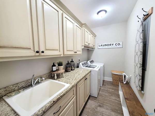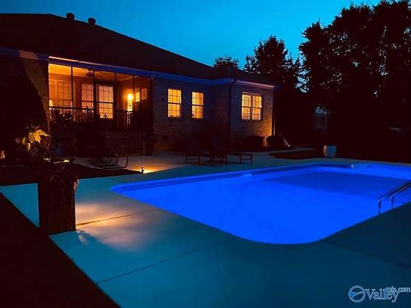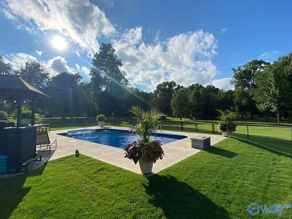 Beautiful property. One owner custom built home situated on 2.9 Acres and includes an inground saltwater pool. Looks like new and shows extremely well. Hardwood floors or tile throughout home, no carpet. Open floor-plan with granite countertops in kitchen and gorgeous cabinetry, pantry and sep. laundry room nearby with sink and cabinets. Every bedroom has access to a full bath. Master has good size walk-in closet, Gas log fireplace in greatroom, screened-in covered porch and lovely setting behind home, with trees and nature behind, might even see a deer or other wildlife. 3 Car Garage attached. Lots of privacy and yet only 15 minutes to downtown Huntsville. Don't miss this one!