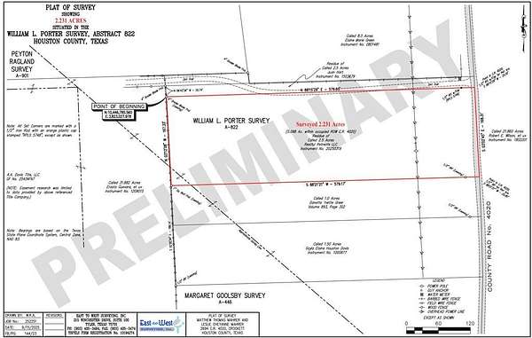 From Crockett take FM 2712 southbound for 1.7 miles, turn right on County Road 4020, property on right hand side approx. 2.6 miles. Recently surveyed, markers on-site on corners. Gravel driveway is not apart of the property but next to it. See the 2694 sign posted at the front next to survey marker.