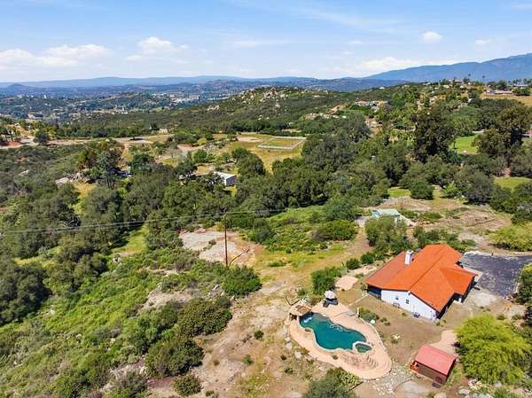 NEED to sell quickly!! Range pricing $799,000 to $849,000. Call listing agent Jessica Aliano for a private showing. Welcome to your private retreat in the hills of Valley Center. Set on 4.42 acres, this single-level ranch-style home offers 3 bedrooms, 2 bathrooms, and 1,752 square feet with an open floor plan designed for both comfort and entertaining. The true standout is the resort-style backyard. A stunning rock pool features a grotto with a waterfall you can walk beneath, a built-in bar with a swim-up window, and a rock waterslide, creating a one-of-a-kind space that feels like your own private getaway. Surrounded by natural landscape and mountain views, you’ll enjoy breathtaking sunsets from multiple areas of the property, with views stretching across two valleys. A jacuzzi adds to the outdoor experience, creating the perfect place to relax and take in the views. Picture yourself hiking your own land and gardening, surrounded by mature landscaping that includes grapevines, sweet sage, black sage, rosemary, thyme, and other native plants throughout the property. There is also a 40-foot metal greenhouse structure on site, offering additional potential for those looking to expand their gardening or outdoor use, along with multiple rainwater catchment tanks that help support the land. The usable acreage offers incredible flexibility with space for RV parking, boats, and all your toys. A large detached shed approximately 18 x 19 with two roll-up doors sits on an oversized concrete pad, perfect for storage, equipment, or hobbies, while additional concrete pads throughout the property offer endless potential, including one already equipped with water, propane, and electricity for a future outdoor kitchen or entertaining space. A detached pool house/shed also offers the opportunity to convert back into a sauna. Located on a private street shared by only five homes, this property offers both privacy and freedom, with no noise ordinance in the area and the right to farm. The property itself is gated, adding an extra layer of privacy and security. You’re approximately 11 minutes to Valley Parkway in Escondido, about 14 minutes to Escondido grocery stores and daily essentials, an even shorter distance to Lake Wohlford for fishing and boating, and just minutes to a popular local café in Valley Center. The home also features 33 owned solar panels for energy efficiency and long-term savings. This is a rare opportunity to own a unique acreage property with incredible outdoor features, privacy, and convenience all in one.