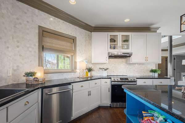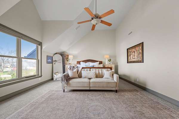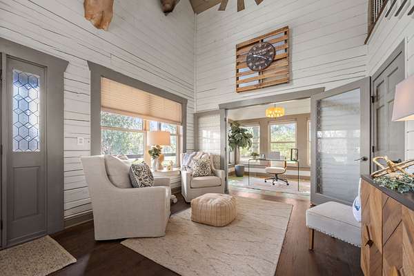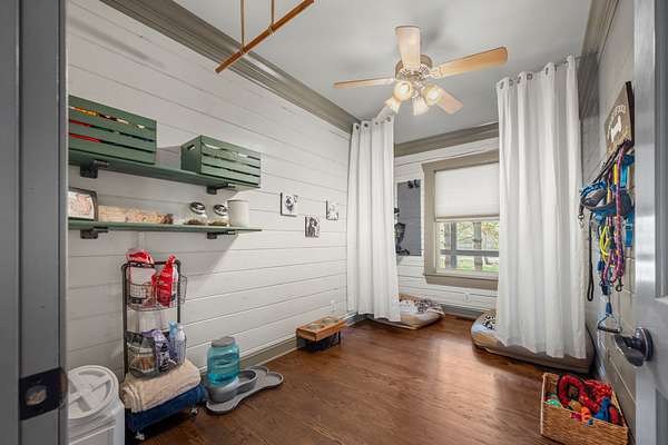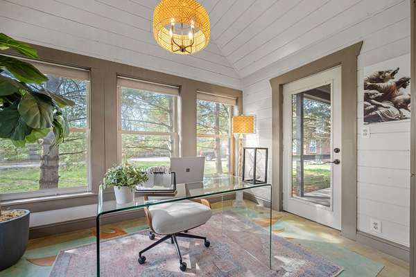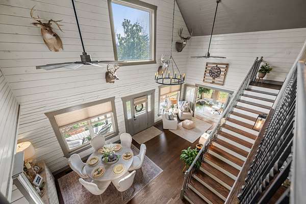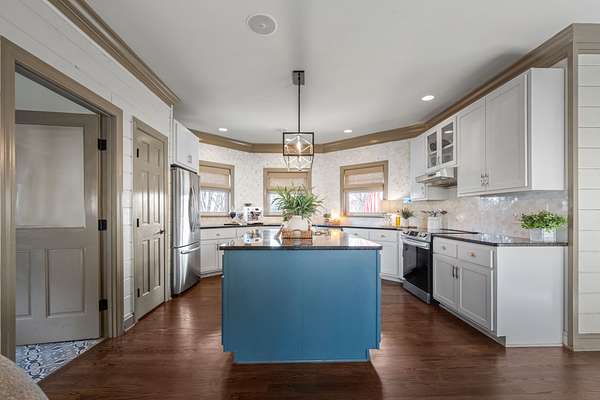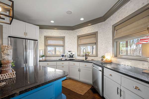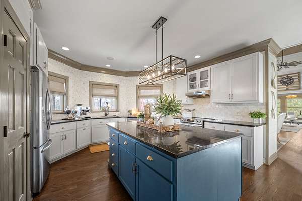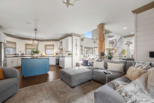 - Bookcases, Ceiling Fan(s), High Ceilings, Kitchen Island, Open Floorplan, Pantry, Redecorated