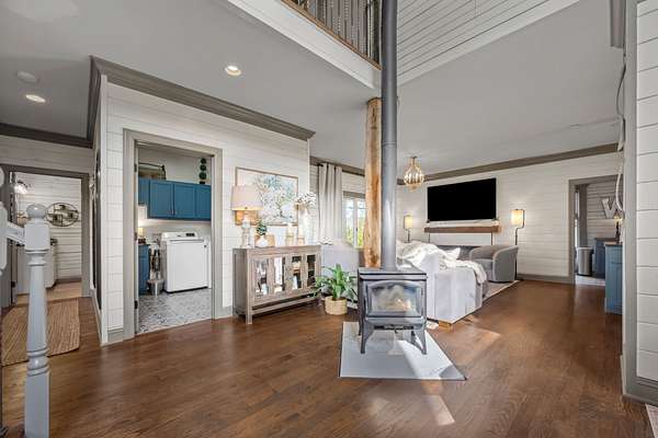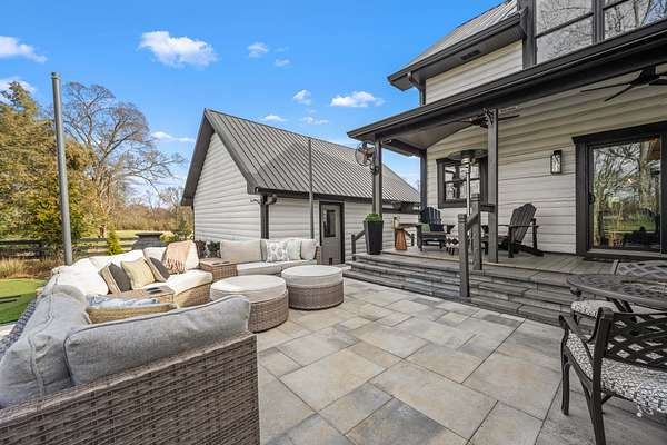 OPEN HOUSE THIS SUN 2:00-4:00! Welcome to this stunning modern log home set back on 2.2 acres of professionally landscaped grounds. This home percs as a 3 bedroom and is currently used as a 4 bedroom with 3 full-baths offering plenty of space and flexibility. This refined residence blends rustic charm with modern updates for effortless indoor-outdoor living. The home offers an open-concept layout with refinished hardwood flooring and an updated kitchen designed for both beauty and function. The kitchen features a giant island with pull-out cabinet drawers, offering exceptional storage and workspace, along with a large walk-in pantry. Just off the kitchen is a separate butler’s pantry/mudroom featuring a custom backsplash, wine fridge, and sink-perfect for entertaining & everyday convenience. A stylish and spacious laundry room adds functionality with a laundry chute, abundant cabinetry, and plenty of workspace. The spacious primary suite is a true retreat with soaring vaulted ceilings, a large bath with a classic clawfoot tub, and a bay window overlooking the serene, park-like yard. Outdoor living is exceptional, featuring wraparound porches with ceiling fans, a beautifully fenced backyard, and a multi-level paver patio—partially covered and surrounded by lush landscaping designed for privacy. The grounds are enhanced with a full irrigation system and tasteful outdoor lighting, highlighting the extensive landscaping while creating a warm, inviting ambiance in the evenings. Enjoy a putting green, a covered dining area, and thoughtfully designed outdoor spaces ideal for entertaining or unwinding. Additional features include a detached garage and a separate matching shed, providing ample storage and flexibility. Land living with location conveniences. Located directly across from the Stones River, this home also offers direct access to the Greenway walking path and Barfield Crescent Park, creating an unbeatable blend of natural beauty, recreation, and modern comfort.