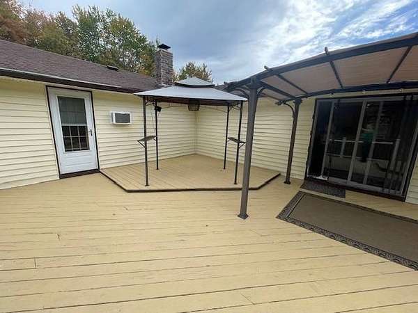 Country living at its best. 3 Bedroom, 1 bath Ranch has so much to offer. There are 2 pieces of connecting land being sold together to give over 2 acres of land. Breezeway connects the 2+car garage, with double lean-to off garage and a loft over the garage. Home has a screened in porch on the side with wood exposed beams. Updated kitchen with oversized island, built in desk area and pet station. Bathroom accessed via pocket doors in hallway and kitchen. 3 Bedrooms, one of which has vaulted ceiling and access to back deck. Landry is located in the basement where you will also find enough room for entertaining with a bar and woodstove to keep you warm. Basement has storage room with shelves. 15 minutes to shopping, 30 minutes to Massachusetts and Vermont.