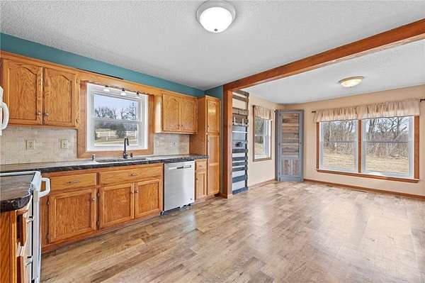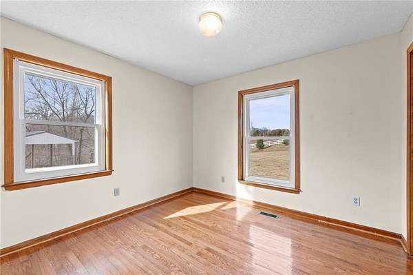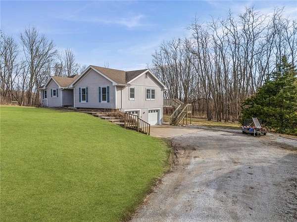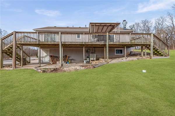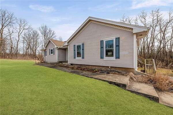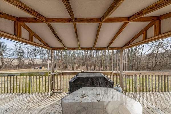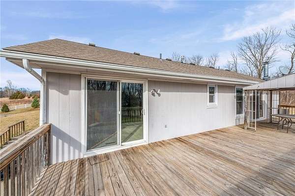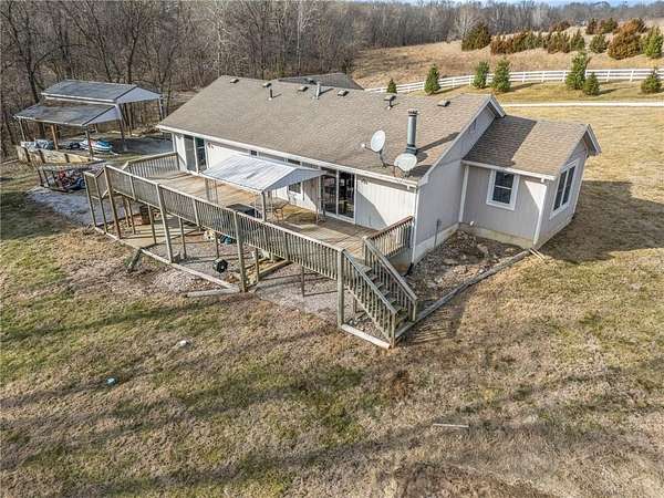 Escape to the charm and tranquility of historic Weston with this wonderful 4-bedroom, 3-bath home nestled on approximately 2+ breathtaking acres. Surrounded by gorgeous open land, mature trees, and peaceful countryside views, this property offers exceptional privacy and serenity so quiet and still, you truly feel as though you can't hear a pin drop. This home features an impressive approximately 600 sq ft deck with direct access from both the living room and the primary bedroom, creating a seamless indoor-outdoor connection. Whether enjoying quiet mornings stepping outside from your private retreat or entertaining guests from the main living area, this expansive deck provides the perfect setting to relax and take in the calm, picturesque landscape. The home offers a spacious and versatile layout, including wood burning fireplace in living room, breakfast nook in kitchen with built-ins, primary bedroom offers private bath, 2 car garage, carport, and a nonconforming fourth bedroom in the basement complete with its own full bath, making it ideal for guests, extended family, or a private office suite. Recent improvements provide added value and peace of mind, including new windows installed in 2023 and a new 50 gal water heater 2024. The property also offers excellent parking and storage options with a two-car garage and additional carport. Located just minutes from the heart of historic Weston, known for its charming downtown, boutique shops, wineries, and rich heritage, this property offers a rare opportunity to enjoy peaceful country living while remaining conveniently close to one of Missouri's most beloved historic communities. If you've been searching for scenic acreage, incredible quiet and timeless Weston charm, this exceptional property delivers it all.