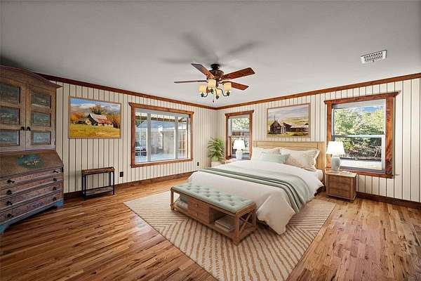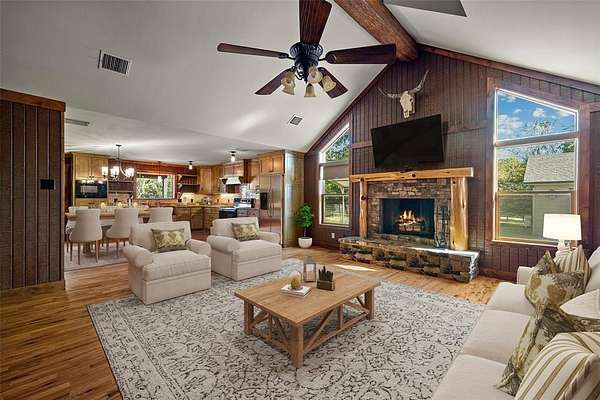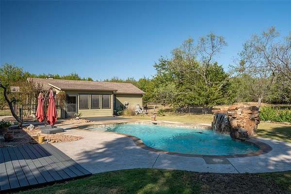 Discover your own private sanctuary on this exceptional multi-home estate, where luxury meets tranquility behind secure, gated entrances. This remarkable property features a stunning, thoughtfully designed & crafted main residence offering 3 spacious bedrooms, 2 full baths, open concept kitchen & living room with stone WBFP, & custom woodwork from trees harvested from the property. In addition to the Pool House, a second home is nestled behind its own private gated entrance providing a split bedroom layout with 2 bedrooms, 2 full baths, custom closets w-built-ins and laundry areas & an enclosed back patio to enjoy quiet mornings, evenings and nature. Property offers an impressive total square footage of 4,848 living space, perfect for extended family, guests or income-generating opportunities!! The heart of this retreat centers around a magnificent in-ground gunite pool with cascading waterfall features complemented by a covered back patio with stone WBFP off the main home for seamless outdoor entertaining. The charming pool house offers comfortable accommodations with one bedroom, one full bath, huge custom closet with built ins and washer-dryer area, cozy living room with gorgeous antique fireplace & flows effortlessly into the kitchen and dining areas with easy access to the enclosed, airy sunroom overlooking the backyard aquatic oasis! The expansive acreage features a picturesque stocked pond with fountain, workshop, detached 27X32 garage with 2 mini-splits, ceiling fan, epoxy flooring, upstairs storage, canned LED lighting & an exterior door. The 800+- SF Barn is a PLUS along with free standing covered carports for your boat, RV, tractors or equipment. Truly a rare opportunity to own this versatile and unique property in sought after Caddo Mills. This property is absolutely amazing! Come discover your own private country paradise! Must see!!!